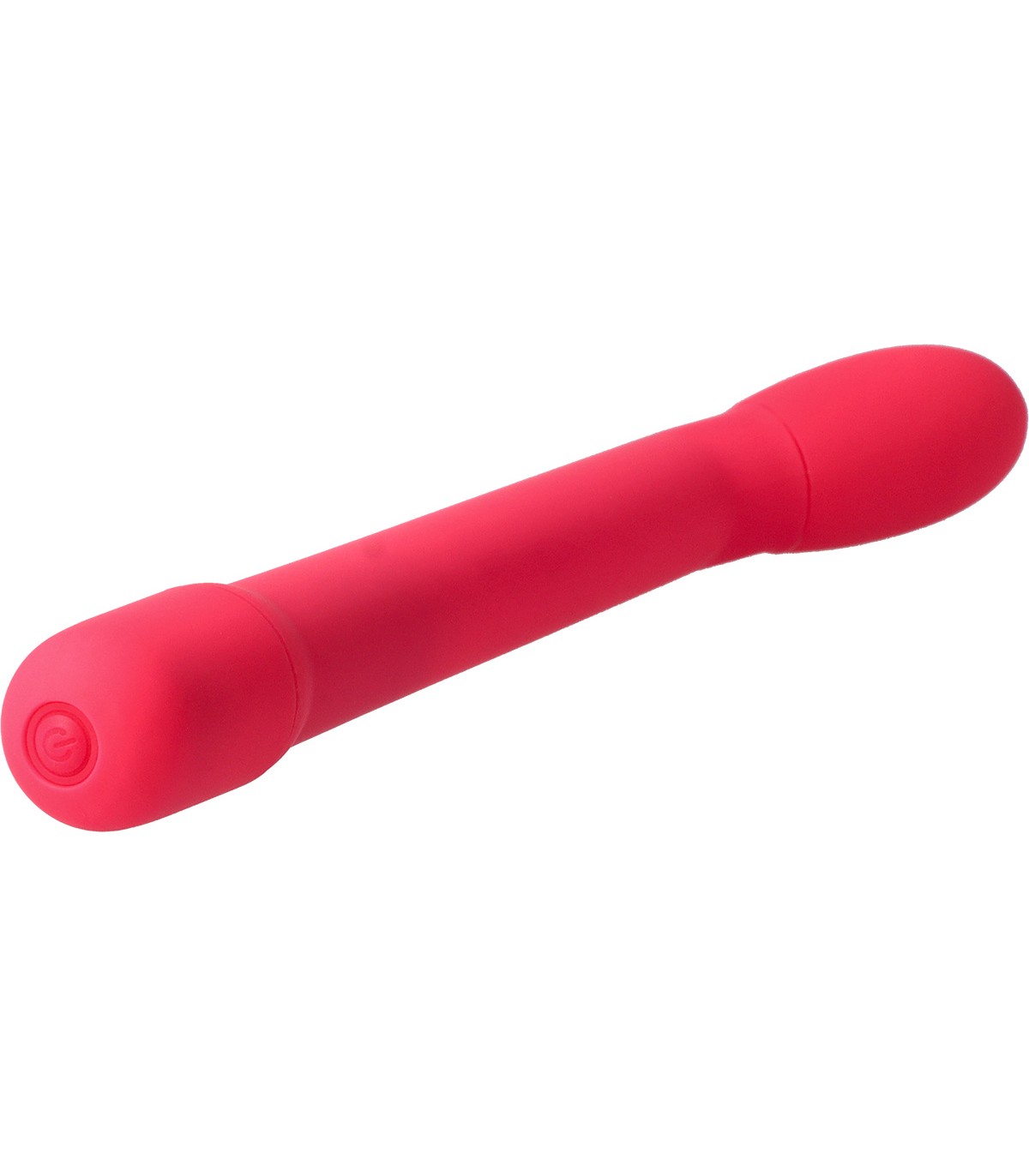 Wiederaufladbarer G-Punkt-Vibrator mit glatter, abgerundeter Spitze. Seine gebogene Form ermöglicht eine intensivere Stimulation des Bereichs.