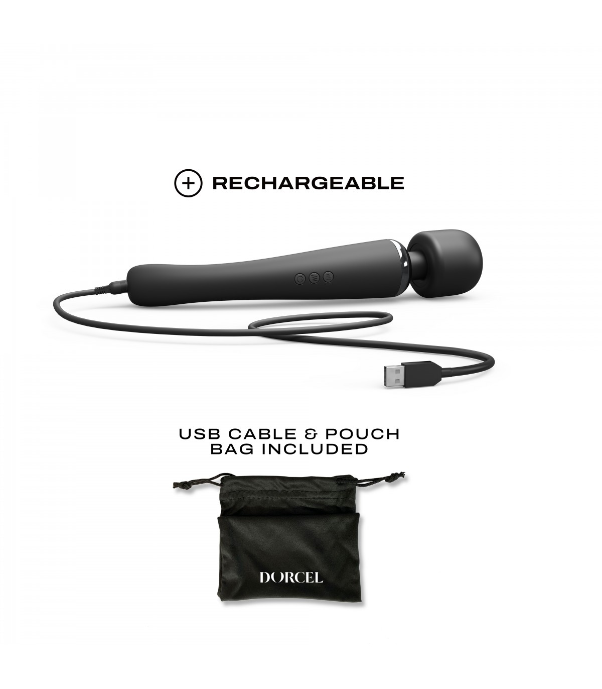 Sie, die dachten, Sie wüssten alles über klitorales Vergnügen, warten Sie ... Entdecken Sie den Megawand und steigen Sie auf! Unter der Eleganz von mattem Schwarz, schlicht und schick, schnurrt ein Motor mit unvergleichlicher Kraft ... Dieser wiederaufladbare externe Stimulator wird Ihre Klitoris im Handumdrehen völlig größenwahnsinnig machen! Mit nicht weniger als 20 Vibrationsmodi und 8 Intensitäten bietet er Ihnen 160 Orgasmuskombinationen für Megavergnügen! Seine ergonomischen Kurven versprechen perfekten Halt und sein flexibler Silikonkopf stimuliert sanft alle erogenen Zonen. Unübertroffene Power für Mega-Vergnügen!