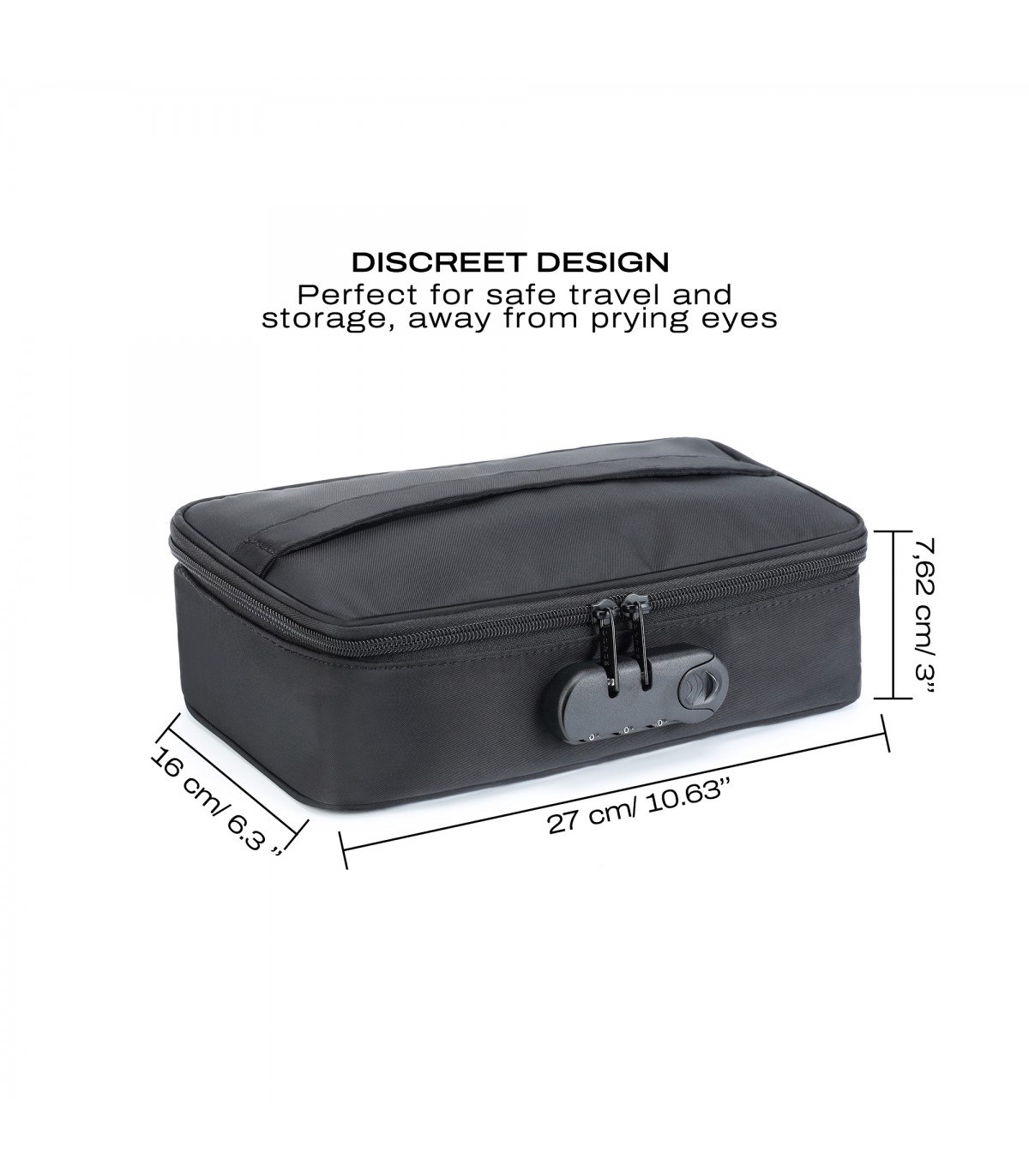 Da Ihre Geheimnisse nur Ihnen gehören, wird die Discreet Box mit einem integrierten Vorhängeschloss mit anpassbarem Code verschlossen. Machen Sie sich keine Sorgen, Sie riskieren nicht, Ihre Schlüssel zu verlieren. Dank der großen Aufbewahrungskapazität (4–5 mittelgroße Spielzeuge) können Sie alle Ihre Lieblingsspielzeuge immer griffbereit haben.