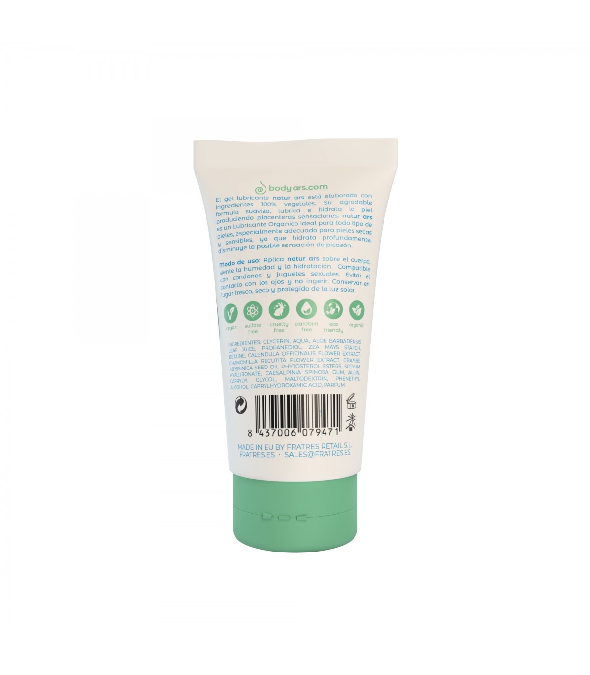 Body ars natur ars Gleitgel besteht zu 100 % aus pflanzlichen Inhaltsstoffen. Seine angenehme Formel macht die Haut weich, schmiert und hydratisiert sie und erzeugt angenehme Empfindungen.