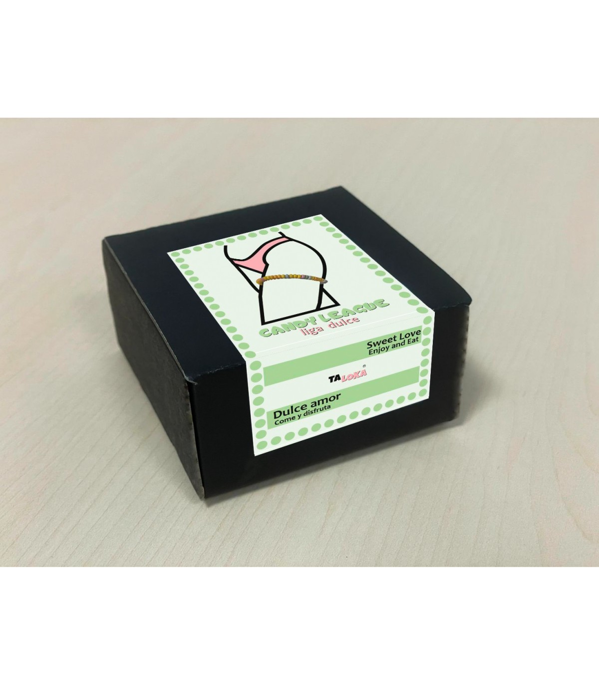 Essbares Strumpfband mit süßen Bonbons, perfekt für süße Fetischmomente. Es ist flexibel und passt für alle Oberschenkelgrößen. Es hinterlässt oder verfärbt sich nicht durch Lippenfeuchtigkeit. Lecken und knabbern Sie zu erotischer Ekstase und Spaß! Je mehr sie daran leckt, desto besser schmeckt es und desto mehr genießt sie die Leidenschaft. Tutti-Frutti-Geschmack. Sie werden nicht aufhören zu lecken und zu knabbern und Ihrem Partner ein würziges Kitzelgefühl zu bereiten.
