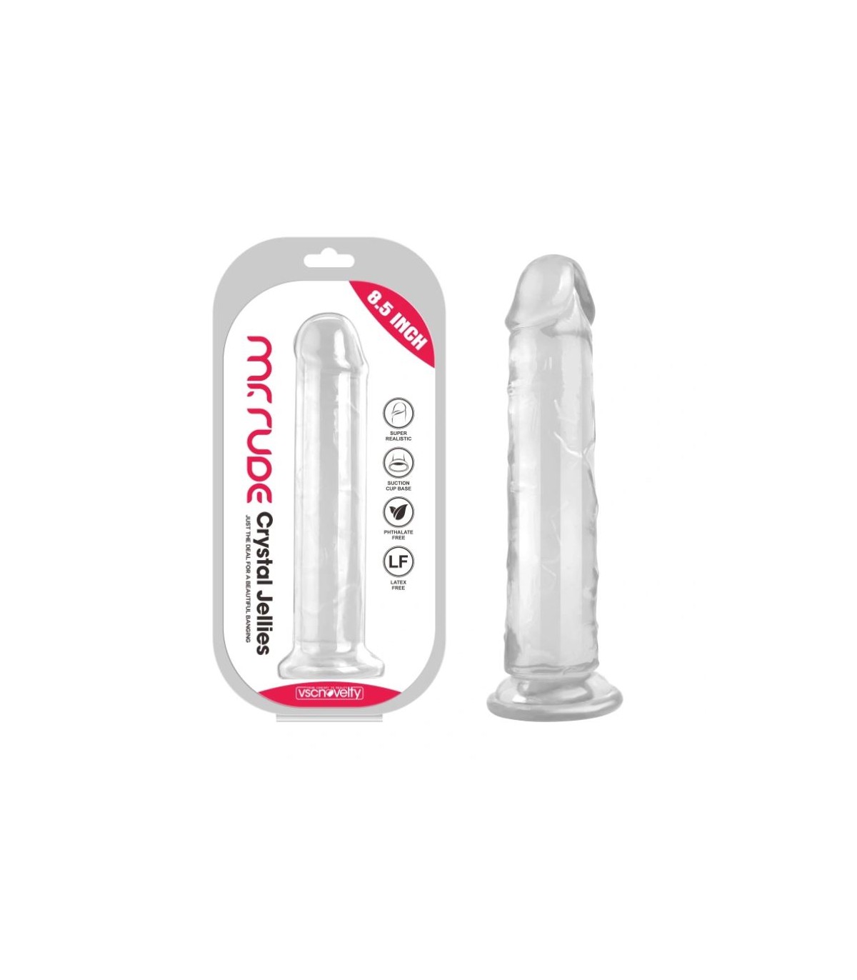 Genießen Sie freihändiges Vergnügen mit dem 21'60 cm großen Saugnapfdildo von Mr. Rude -Crystal Jellies mit einem großzügigen Umfang von 14 cm. Er ist fest und dennoch flexibel und perfekt auf das Vergnügen vorbereitet.
