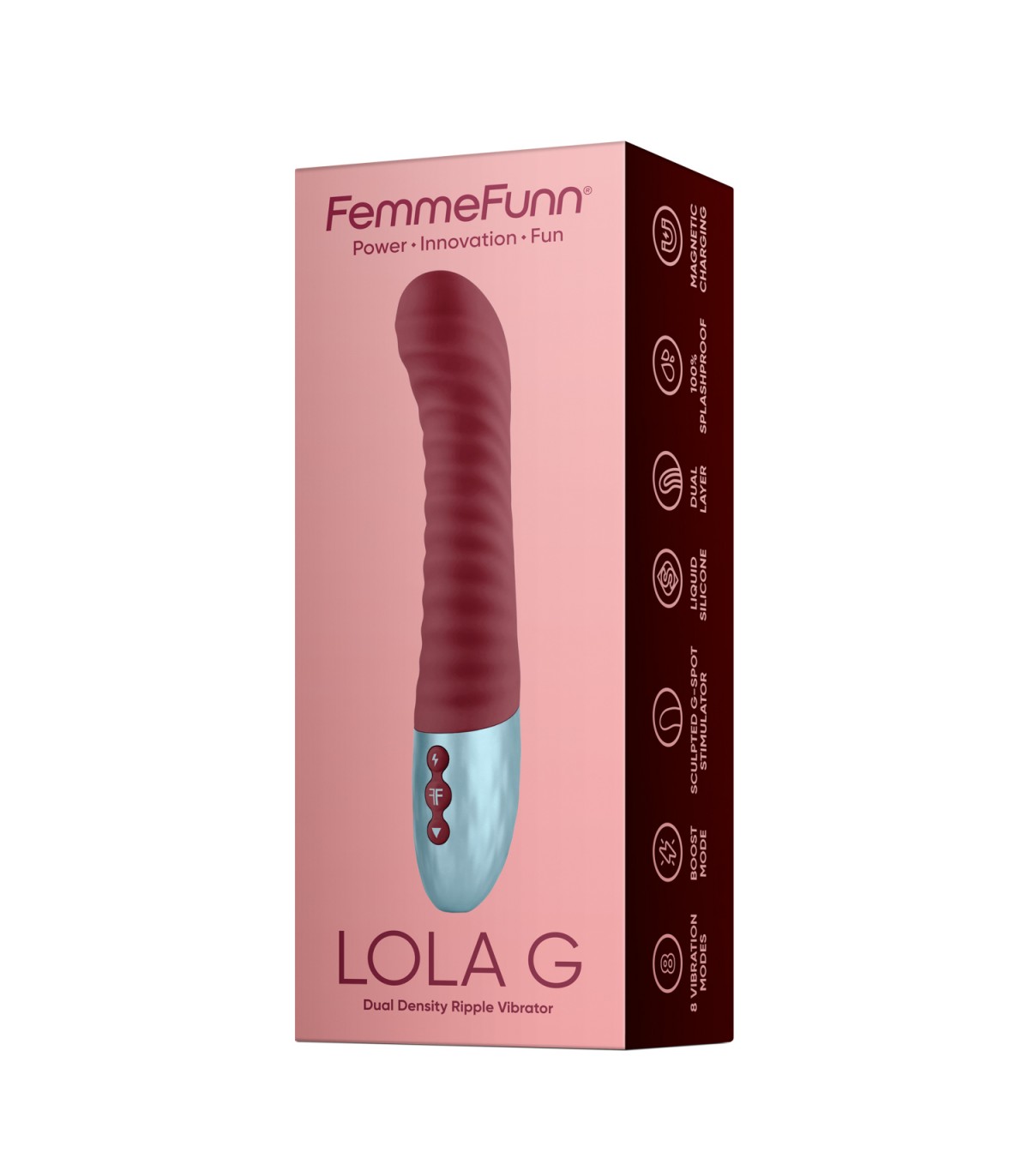 Lola G wurde mit Blick auf die Kraft entwickelt und füllt Ihre Atmosphäre mit seinem weichen, flüssigen Silikonkörper, dem festen Silikonkern und der welligen Textur. Erleben Sie vielschichtige Empfindungen, während Sie durch die 8 Vibrationsmodi fließen. Steuern Sie Ihre Fahrt mit zwei einfachen Tasten.
