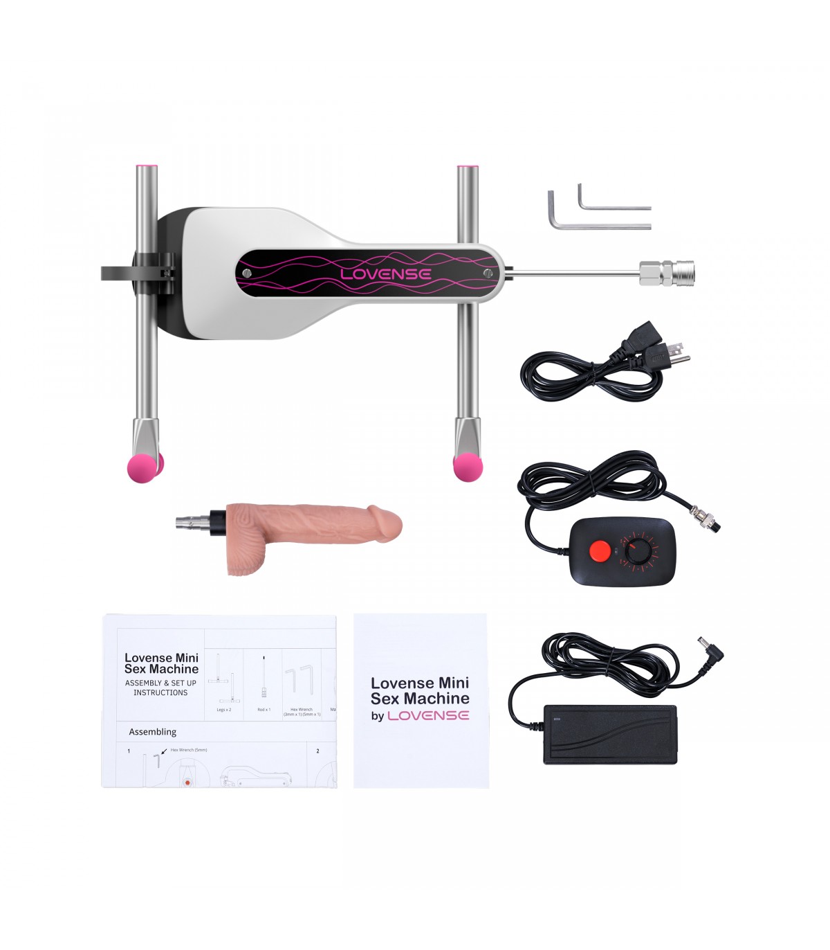 Die Mini Sex Machine wird mit Vac-U-Lock-Adaptern geliefert, die mit verschiedenen Arten von Dildos kompatibel sind.