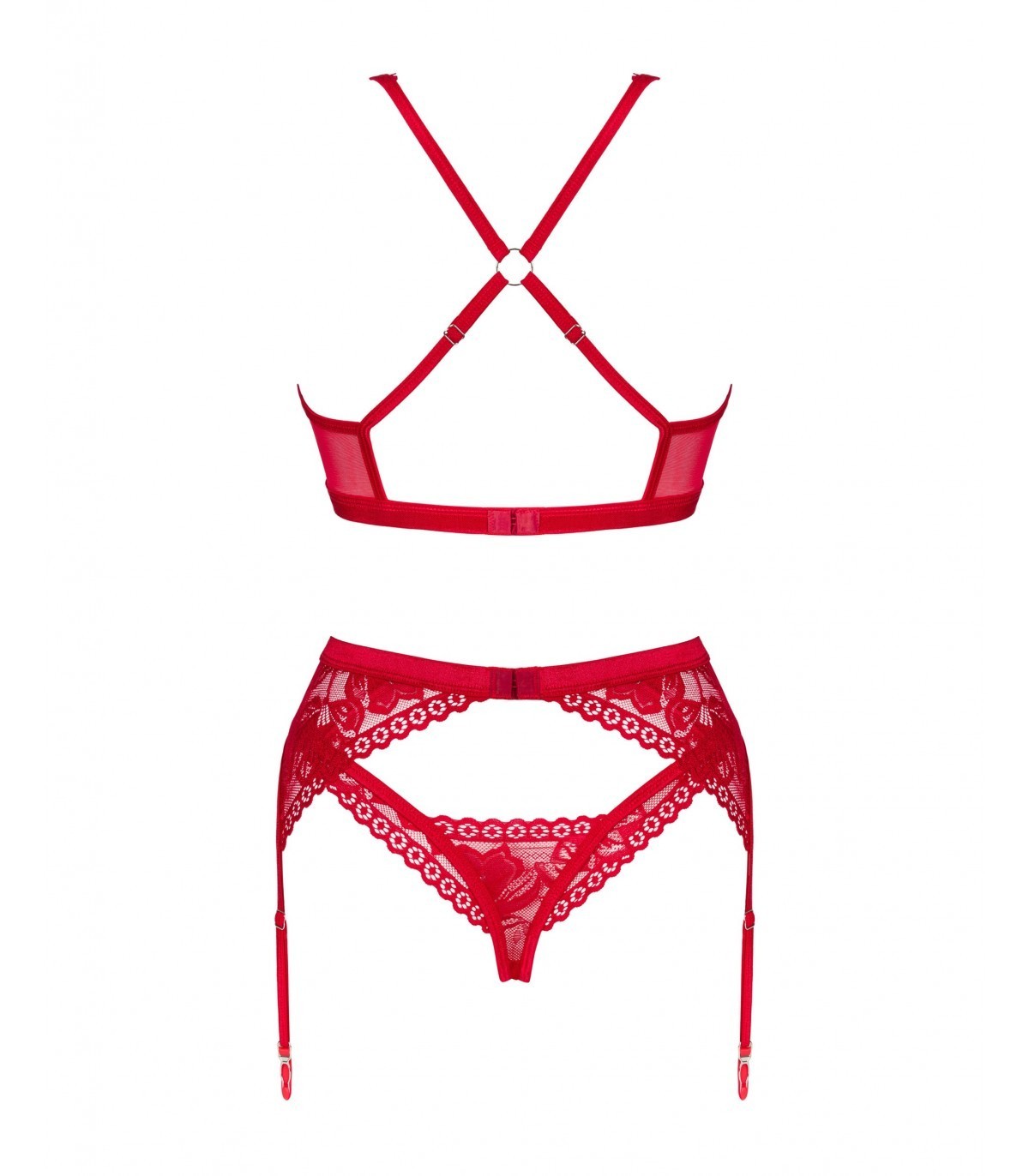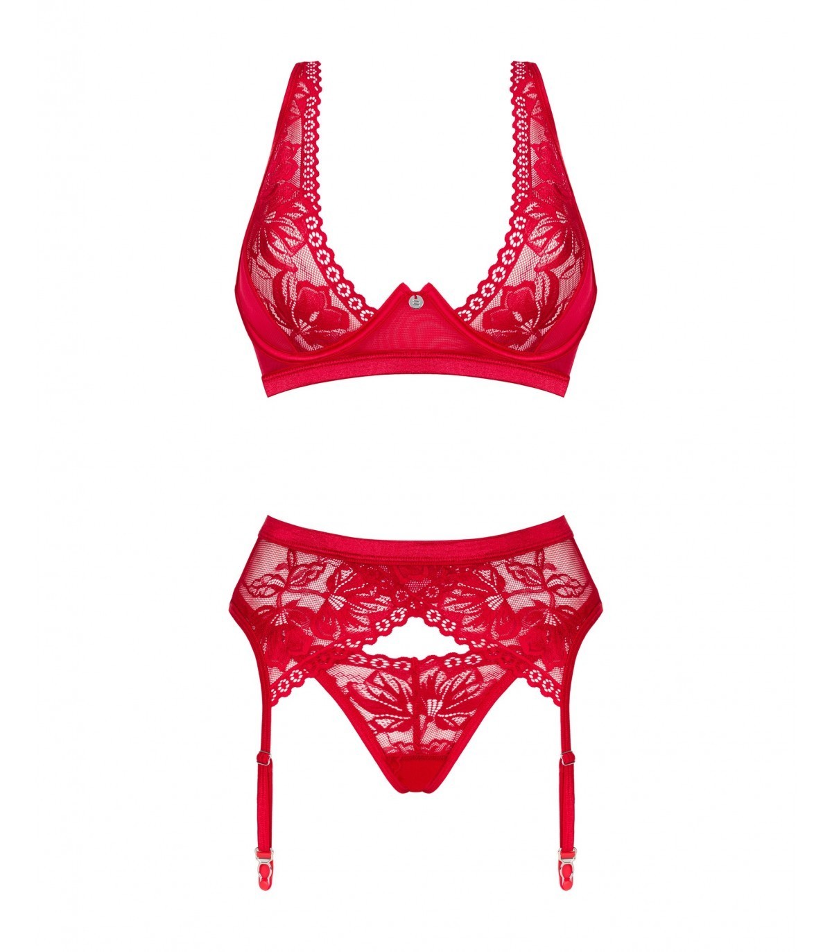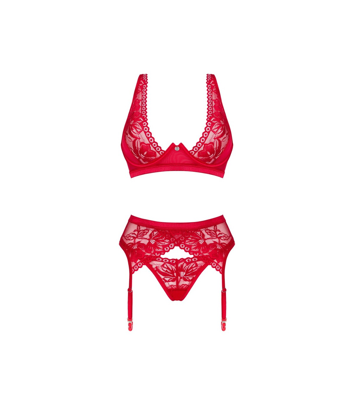 Sind Sie auf der Suche nach gewagten Dessous, die die Sinne betören und ein unvergessliches Erlebnis garantieren? Wir haben etwas absolut Perfektes! Das offene Set Lacelove in feurigem Rot ist eine Kulisse für Frauen, die keine Angst vor Experimenten haben. Der äußerst verlockende Schnitt wird Sie zum Durchdrehen bringen und es unmöglich machen, den Blick von jemandem abzuwenden ... und von Ihren Händen. Lassen Sie sich ein wenig von Ihrer Leidenschaft tragen und sehen Sie, wohin sie Sie führen wird ...