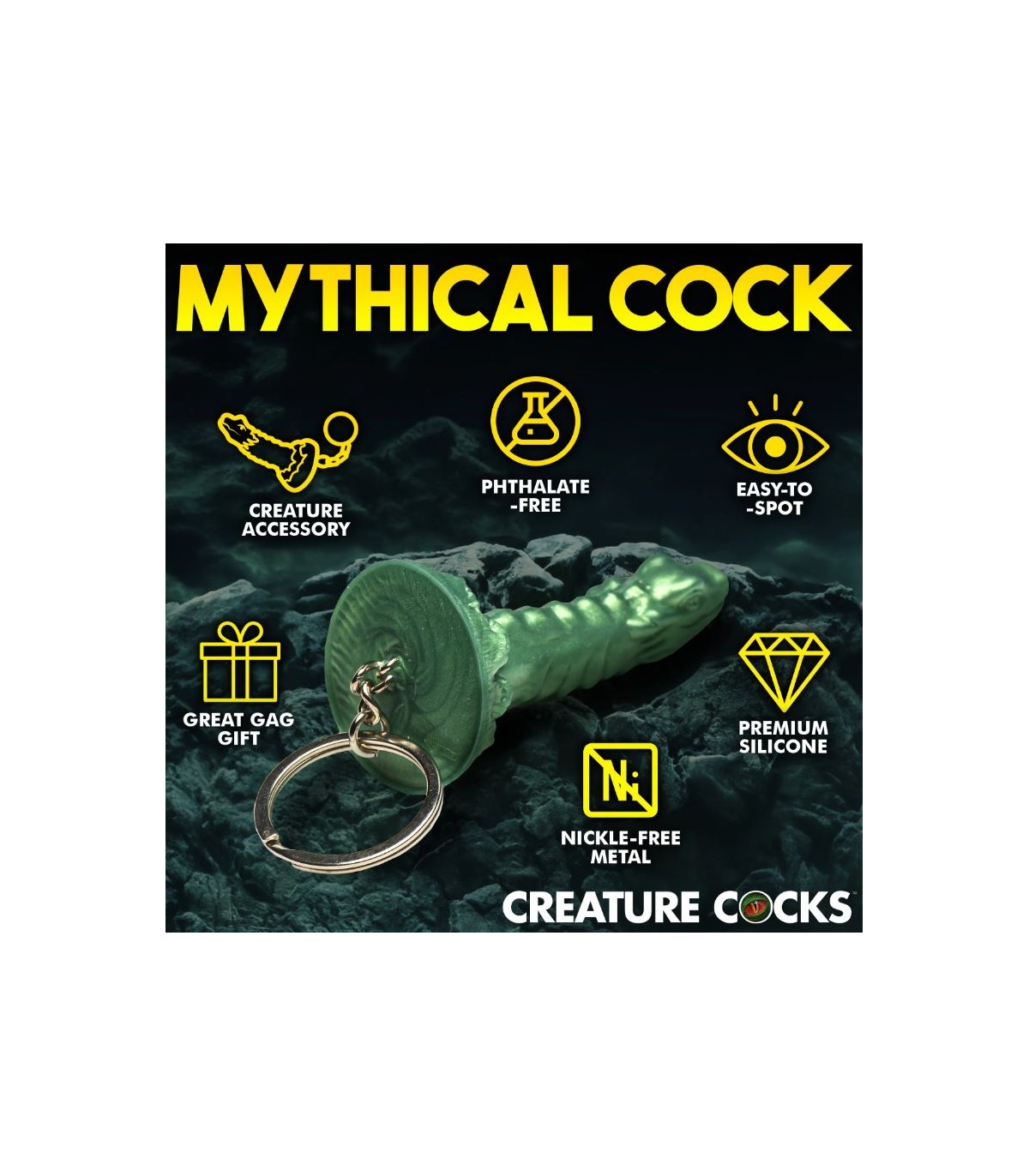 Dieses grüne Cockness-Monster, inspiriert vom Ungeheuer von Loch Ness, wurde geschrumpft, um Sie überall hin mitzunehmen! Lassen Sie Ihre Freak-Flagge wehen mit diesen Creature Cocks-Schlüsselanhängern! Zeigen Sie, dass Sie Fantasy-Rollenspiele, mythischen Sex oder heiße Horrormonster mögen! Befestigen Sie sie an Ihren Schlüsseln, befestigen Sie sie an Ihrer Handyhülle, befestigen Sie sie an einer Tasche oder Handtasche oder hängen Sie sie an Ihren Rückspiegel, um etwas Stil und versauten Spaß hinzuzufügen! Alle kleinen Penisse bestehen aus hochwertigem, phthalatfreiem, körperverträglichem Silikon und das Metall ist nickelfrei für empfindliche Haut. Nicht für den internen Gebrauch geeignet. Nur Neuheitsartikel.