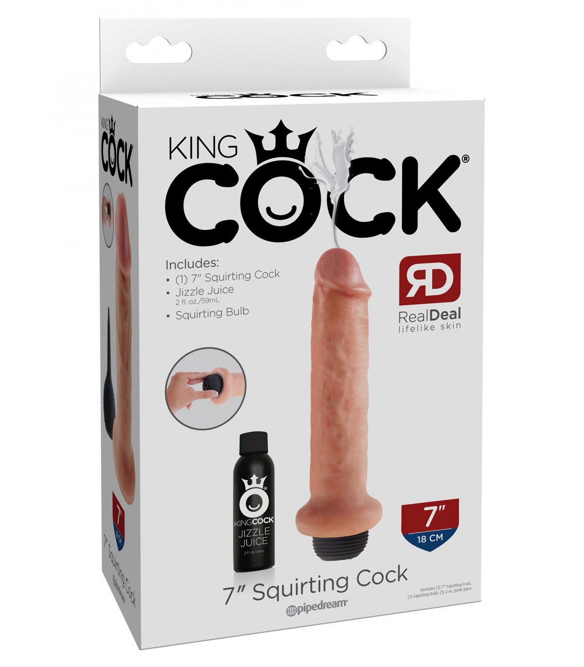 Handgeformt mit unglaublicher Liebe zum Detail und ausgestattet mit unserem exklusiven Jizzle Juice Squeeze Plug, ist der King Cock® Squirting Cocks der befriedigendste Ejakulationsdildo auf dem Markt!