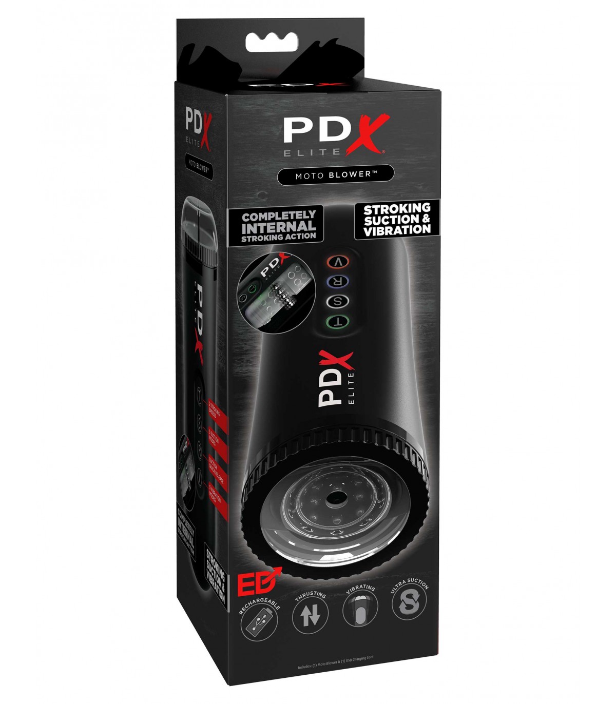 Der PDX ELITE® Moto Blower streichelt Sie nicht nur wie normale Masturbatoren, er kombiniert auch unglaubliche Saugkraft und Vibration mit einer supersanften automatischen Streichelbewegung.