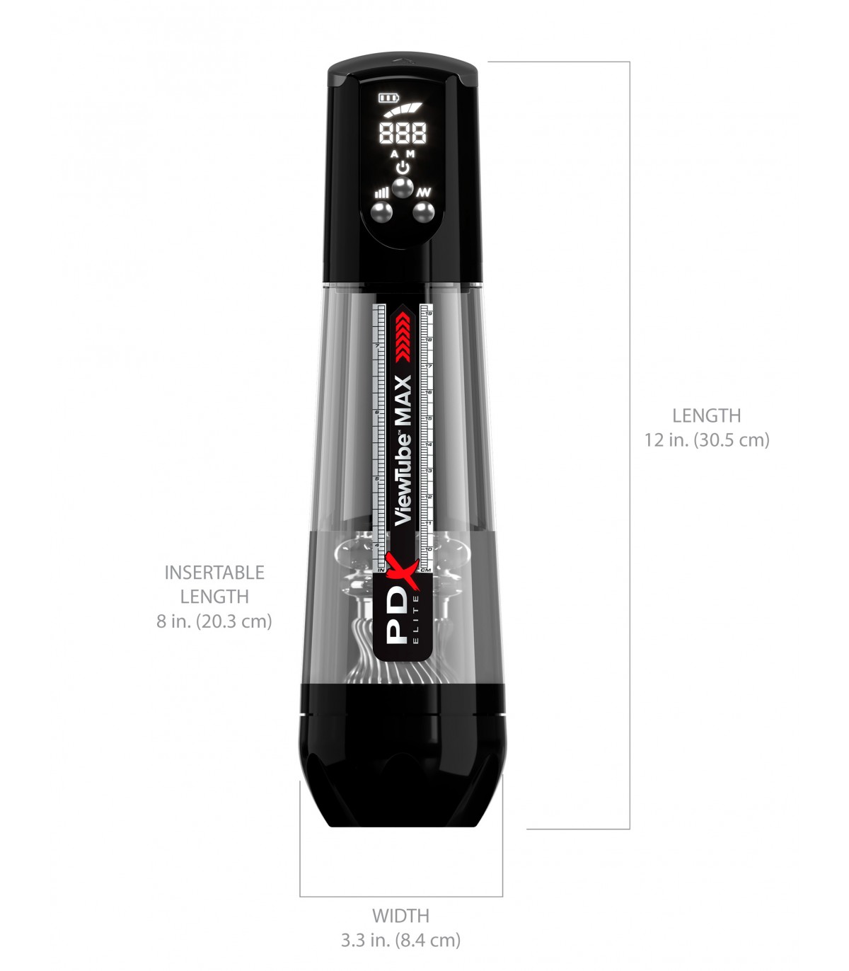 Der PDX ELITE® VIEWTUBE MAX VIEW™ steigert die Masturbation mit leistungsstarker intermittierender Saugkraft für das ultimative Masturbationserlebnis. Es ist ein perfekter Sturm der Empfindungen für intensivere Solo-Sex-Sessions, die an Ihre persönliche Stimmung angepasst werden können! Machen Sie sich bereit für eine explosive Saugwirkung auf Knopfdruck, die Ihren Penis mit einer ultrasanften automatischen Saugwirkung umgibt! Worauf warten Sie noch? Führen Sie es ein und beobachten Sie, wie Ihr Penis maximal wächst!