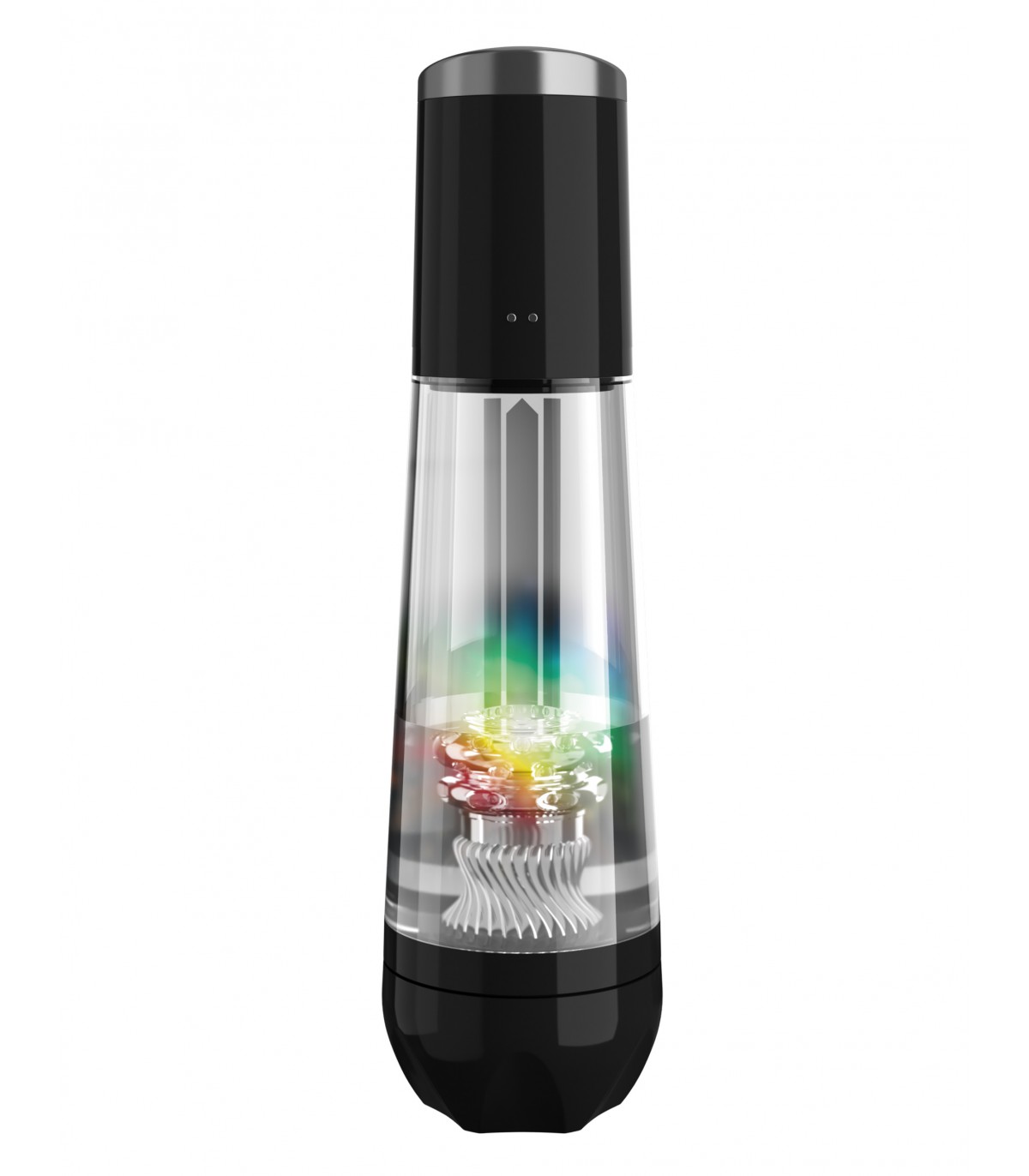 • Beleuchtete LED-Lichter: Sorgen Sie für mehr Spaß und beobachten Sie, wie Ihre Männlichkeit in eine Vielzahl bunter Lichter getaucht wird, während Sie gestreichelt und gelutscht werden!