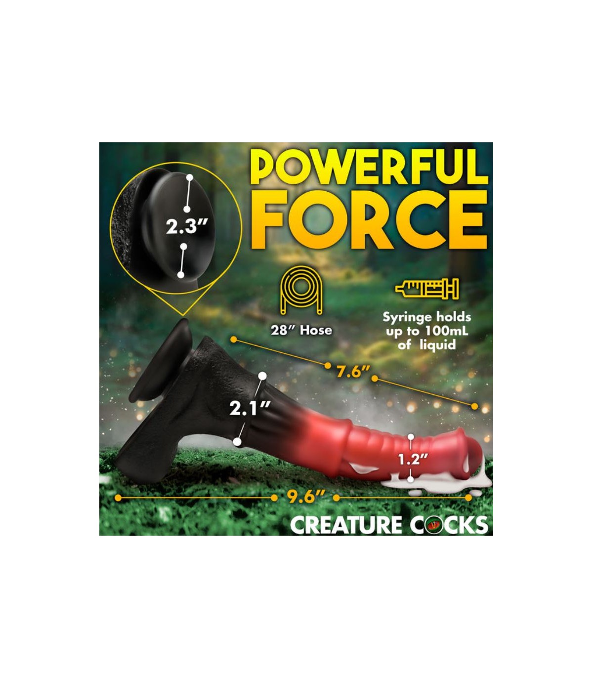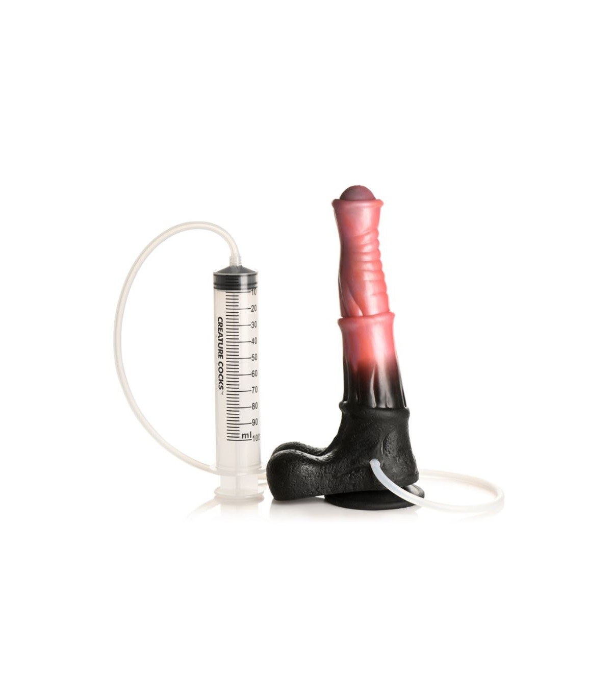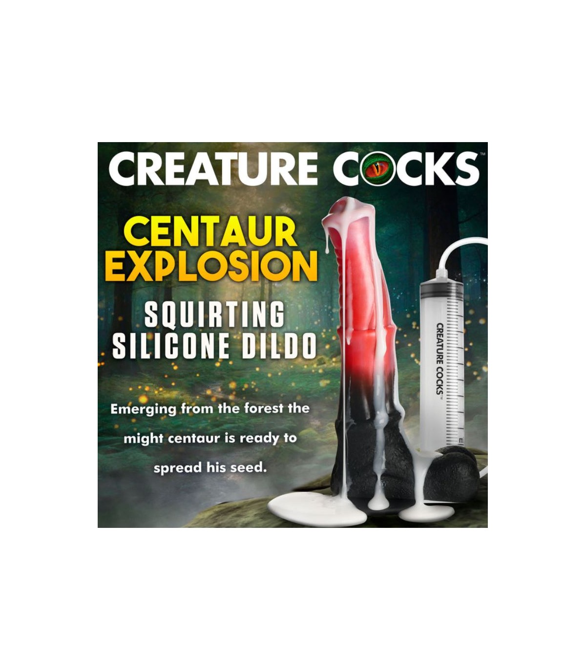 Erfüllen Sie sich Ihre Fantasien, indem Sie sich mit diesem dicken Zentauren-Dildo mit explosiven, tropfenden Flüssigkeiten füllen! Dieser dicke Zentauren-Penis ist pfirsichfarben und schwarz mit ausgestelltem Kopf, geripptem Schaft und großen schwarzen Hoden. Der Schaft ist fest und dennoch flexibel und kann so zusammengedrückt werden, dass er auch auf engstem Raum Platz findet. Dieser aus hochwertigem, phthalatfreiem Silikon hergestellte Penis ist körperverträglich und lässt sich am besten mit Gleitmitteln auf Wasserbasis verwenden. An der Basis sind eine Spritze und ein Schlauch angeschlossen, sodass Sie die Spritze mit dem Gleitmittel Ihrer Wahl füllen und es dann in das Hohlrohr im Inneren des Dildos injizieren können, um ein explosives Spritzerlebnis zu erleben, das Sie von innen heraus erfüllt. Genießen Sie freihändige Fahrten mit der stabilen Saugnapfbasis. Drücken Sie es einfach gegen eine ebene Fläche, um es zu befestigen. Lebe deine Fantasien aus, entdecke versaute Cosplays und gönne dir ein tolles nasses und triefendes Erlebnis, das du so schnell nicht vergessen wirst! Um das Spielzeug nach Gebrauch zu reinigen, verwenden Sie einfach warmes Wasser und milde Seife. Weichen Sie den Dildo, den Schlauch und die Spritze gerne in Seifenwasser ein und spülen Sie sie anschließend für eine gründliche Reinigung ab. Anschließend mit Spielzeugreiniger besprühen und an der Luft trocknen lassen. Vor direkter Sonneneinstrahlung oder Hitze schützen und getrennt von anderen Silikonspielzeugen aufbewahren.