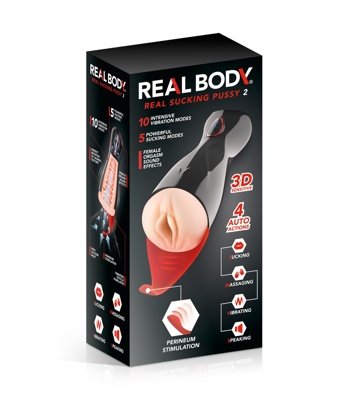 Dank seiner 10 Vibrationsmodi für Masturbation und 5 Saugmodi für Fellatio bietet Real Sucking Pussy 2 eine Vielzahl von Optionen, die es Ihnen ermöglichen, das Erlebnis zu personalisieren und so die intimsten Erwartungen der Wagemutigsten zu erfüllen.
