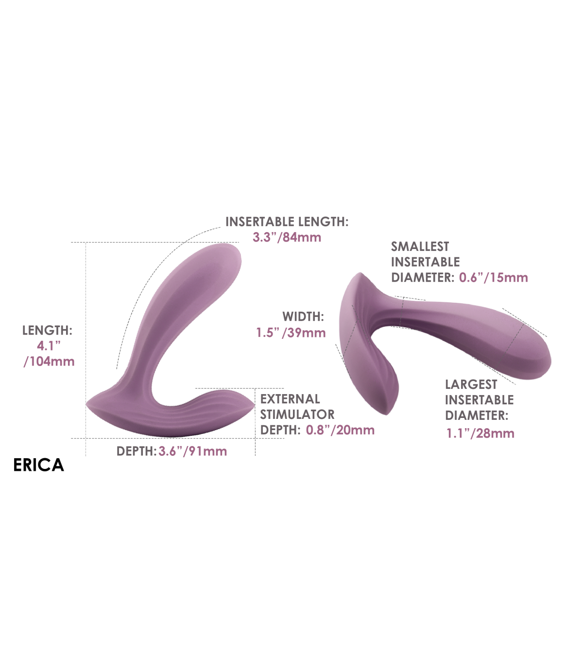 Setzen Sie den Spaß mit 11 fantastischen Modi fort, aus denen Sie wählen können. Durchlaufen Sie Ericas herrliche Vibrationsmuster mit einer unglaublichen Kombination aus interner, externer und dualer Stimulation.