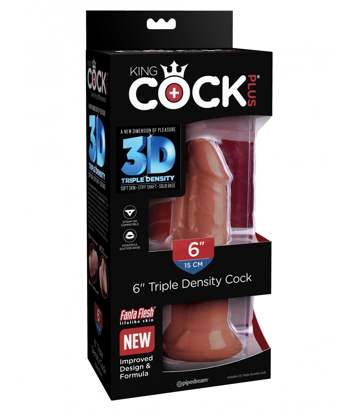 Der 6 Zoll lange King Cock® Plus Penis mit dreifacher Dichte besteht aus dem neuen und verbesserten Fanta Flesh®-Material, wodurch er innen steif und außen weich ist. Die realistisch aussehende Außenhaut fühlt sich weich an, während der innere Schaft steif und erigiert ist wie ein echter Penis und Ihnen das realistischste Vergnügen bietet, das möglich ist.