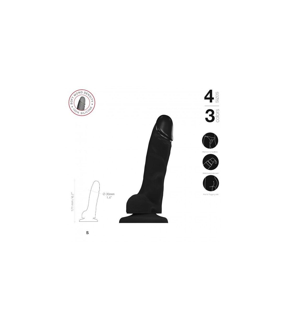 PENE REALÍSTICO SILICONA SUAVE NEGRO S