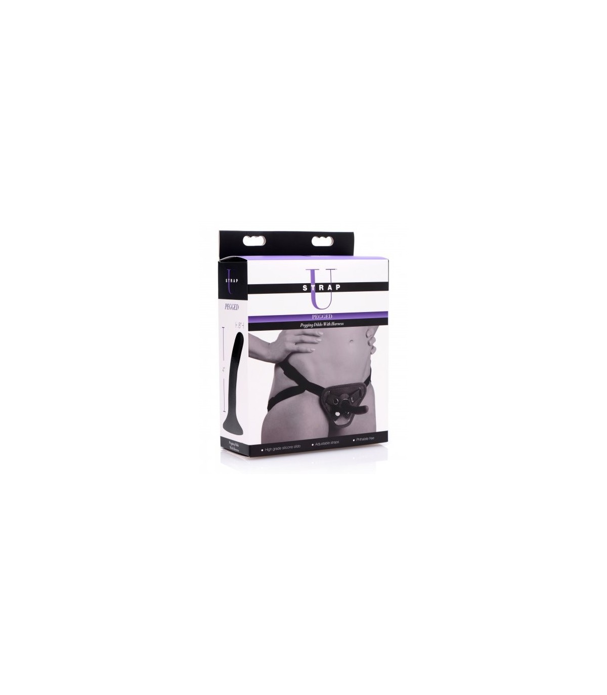 Universelles Harness mit Dildo aus Silikon. Ideal für Anfänger. Seine Krümmung stimuliert das Paar stärker.
