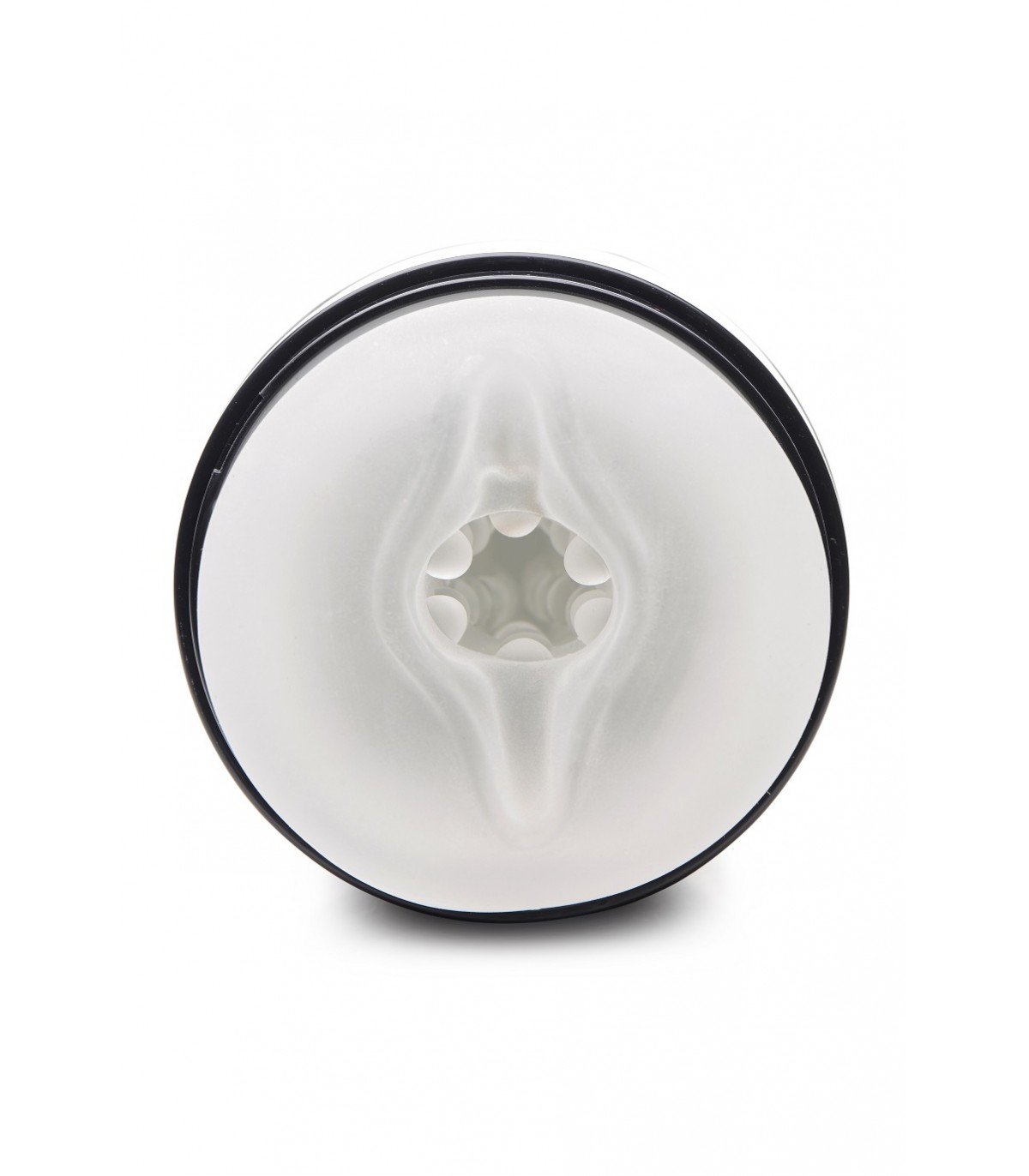 El interior protuberante estimula tu miembro hinchado mientras disfrutas de la vibración y la succión. Siente el material suave y elástico que te envuelve mientras penetras este masturbador.