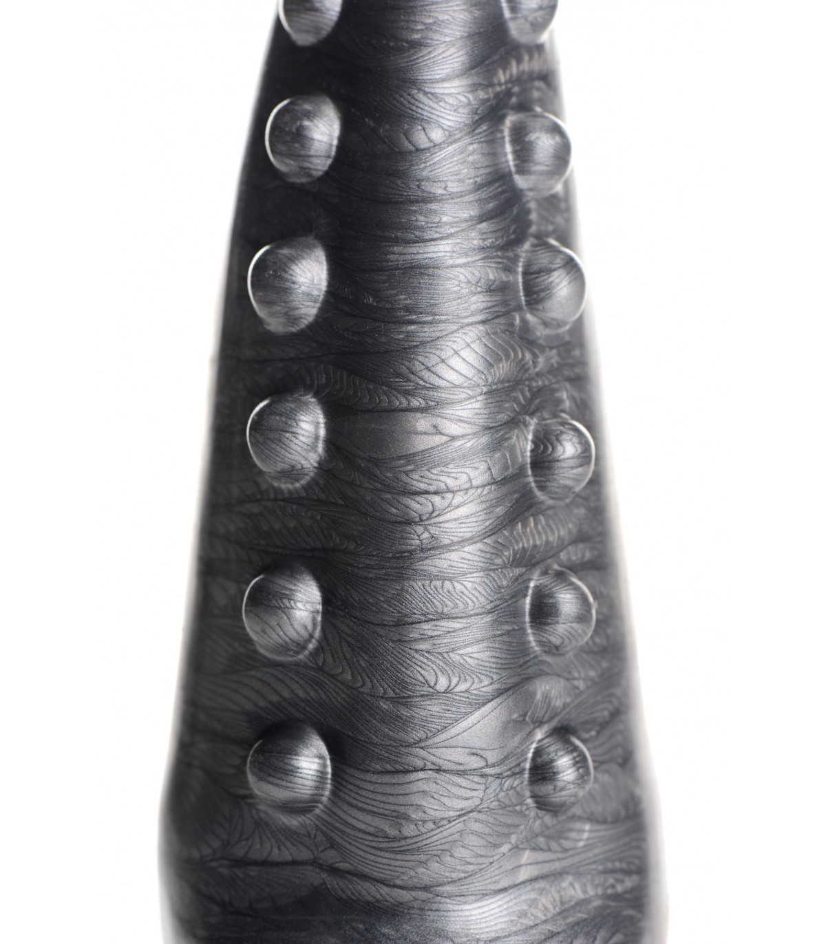 Fantasy Dildo: El tentáculo cónico de este pene cefalópodo está texturizado con protuberancias y tiene una base gruesa y ancha. El consolador plateado metálico termina en una cabeza suave y redonda para facilitar la inserción, pero se ensancha hacia la base para estirarlo. ¡Prepara un disfraz o usa tu imaginación y representa tu escena de fantasía favorita!