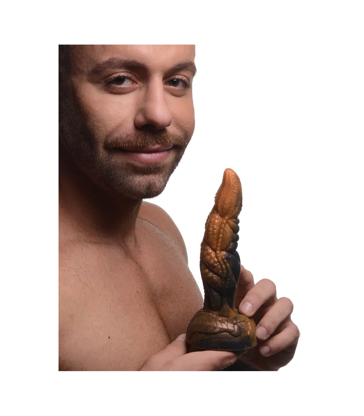 Fantasy Dildo: Esta polla demoníaca a escala proviene de las profundidades del desierto. El fino detalle de la base y el fuste añaden realismo a la fantasía. Disfruta de cada cresta, curva, protuberancia y pliegue de este gallo de dragón con forma de tentáculo. Cada consolador es de un color rojo, marrón y naranja jaspeado único. ¡Prepara un disfraz o usa tu imaginación y representa tu escena de fantasía favorita!