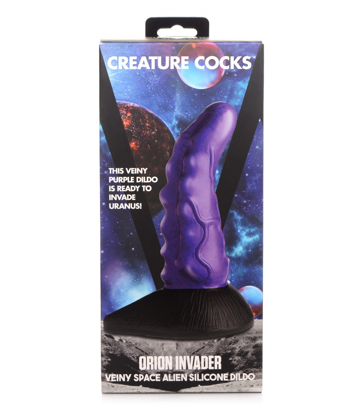 ¡Este Space Invader ha viajado lejos para cumplir tus fantasías! El eje púrpura metálico es largo y ancho, por lo que abre el receptor. El eje acanalado y venoso termina en una punta curva que es perfecta para estimular el punto G. ¡La base ancha y negra tiene una ventosa en la parte inferior que se puede presionar sobre cualquier superficie plana para un viaje con manos libres! ¡Disfruta con tu pareja combinando este consolador de silicona premium sin ftalatos con un arnés con correa para jugar con clavijas!
