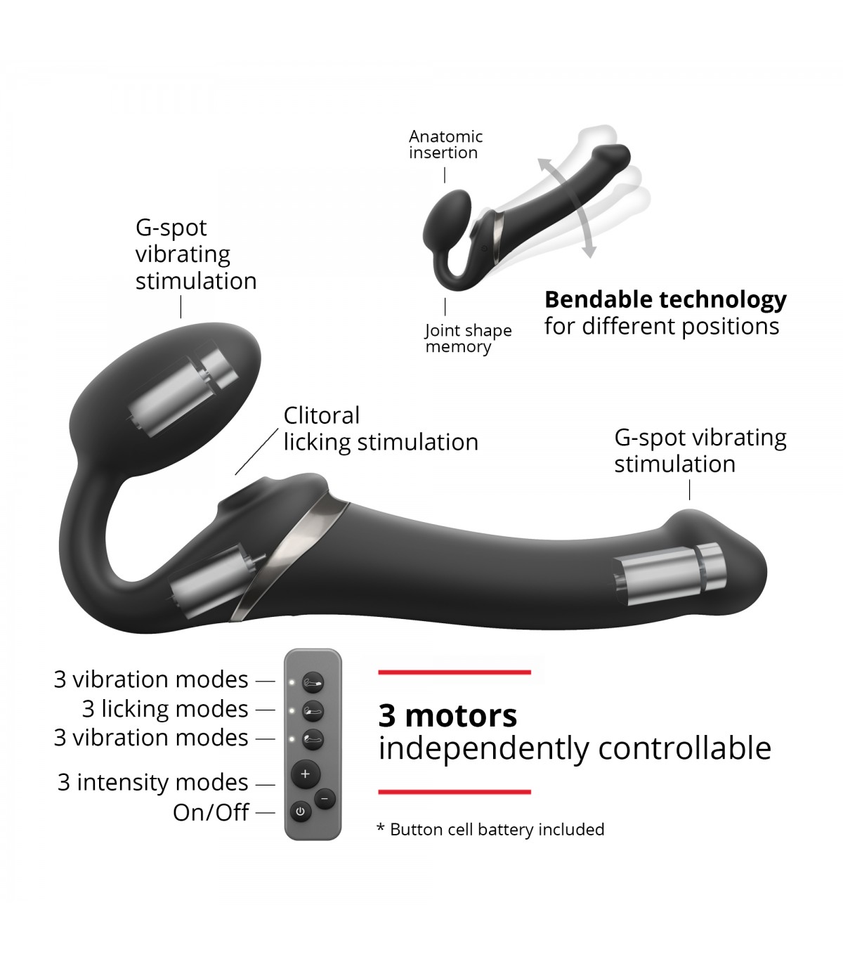 • Dos motores de vibración en vagina y parte penetrante y otro de tapping en el clitoris.