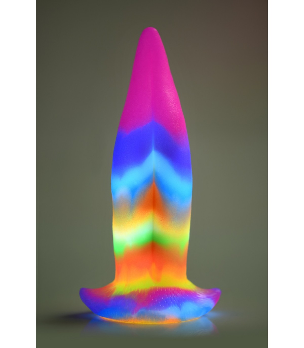 Lengua que brilla en la oscuridad: esta lengua de unicornio arcoíris tiene una seductora curva y forma cónica. Con colores vibrantes bajo la luz y colores brillantes bajo la luz negra, ¡seguro que te divertirás muchísimo!