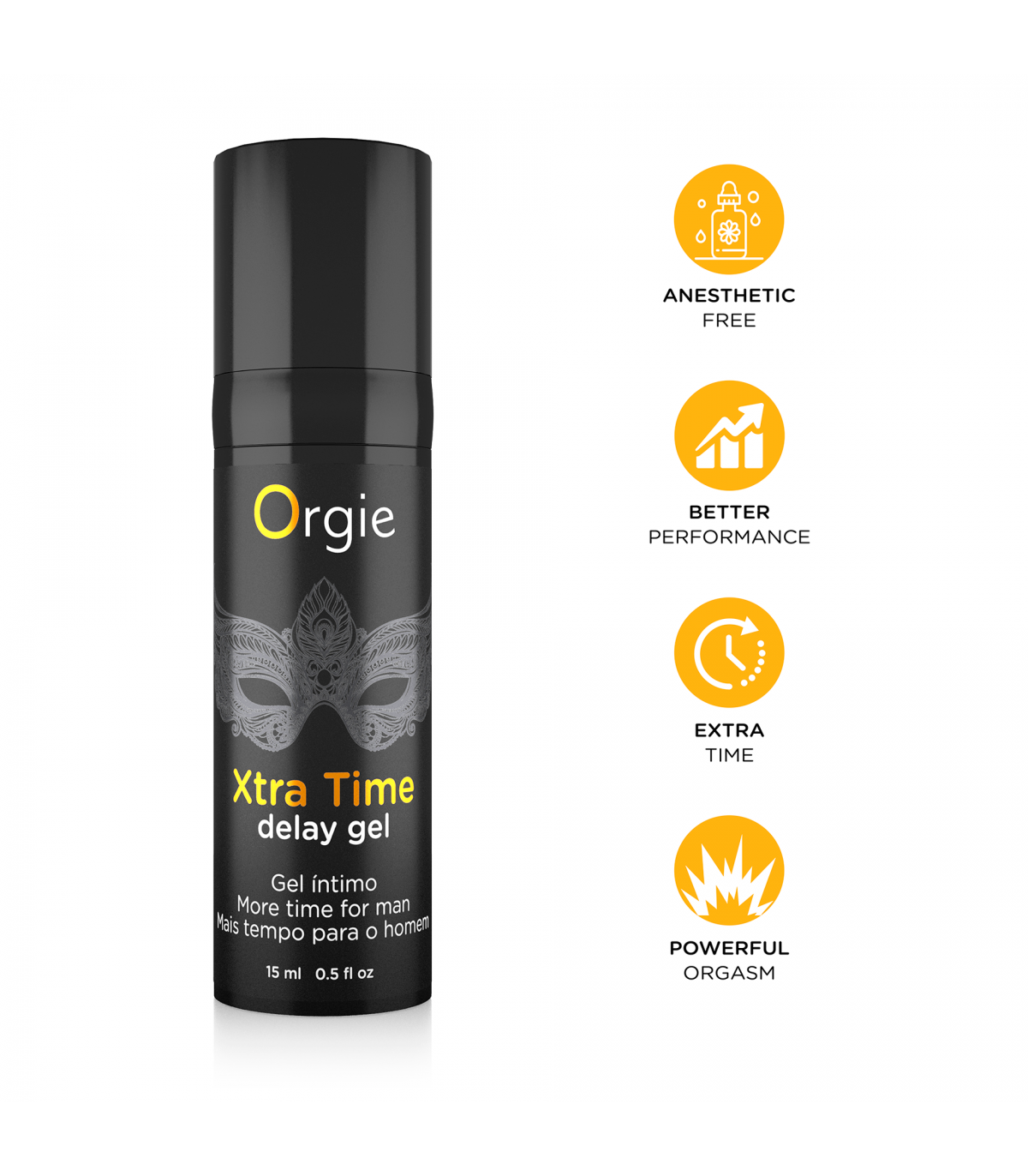 Xtra Time fue desarrollado a base de activos naturales. Ayuda a prolongar el tiempo y el placer del hombre. Xtra Time Delay Gel fue desarrollado con ingredientes activos seleccionados que brindan una sensación desensibilizante. Promueve el aumento del tiempo de excitación y el placer de los hombres. Libre de ingredientes anestésicos como benzocaína y lidocaína.