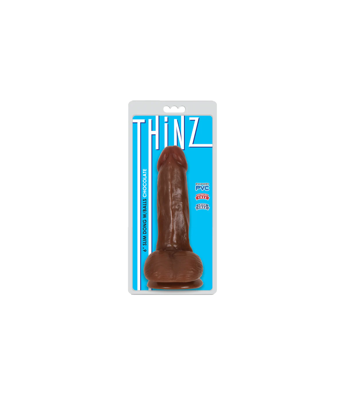 DILDO FINO C/ TESTÍCULOS THINZ CHOCOLATE 15'25 CM