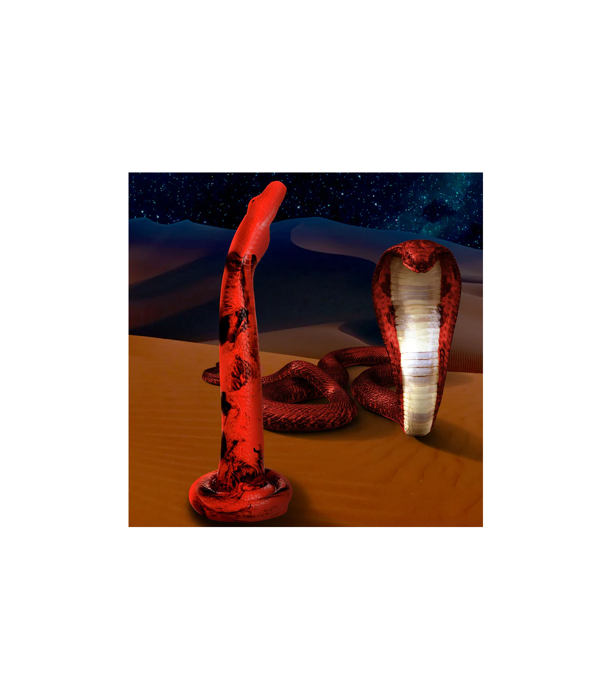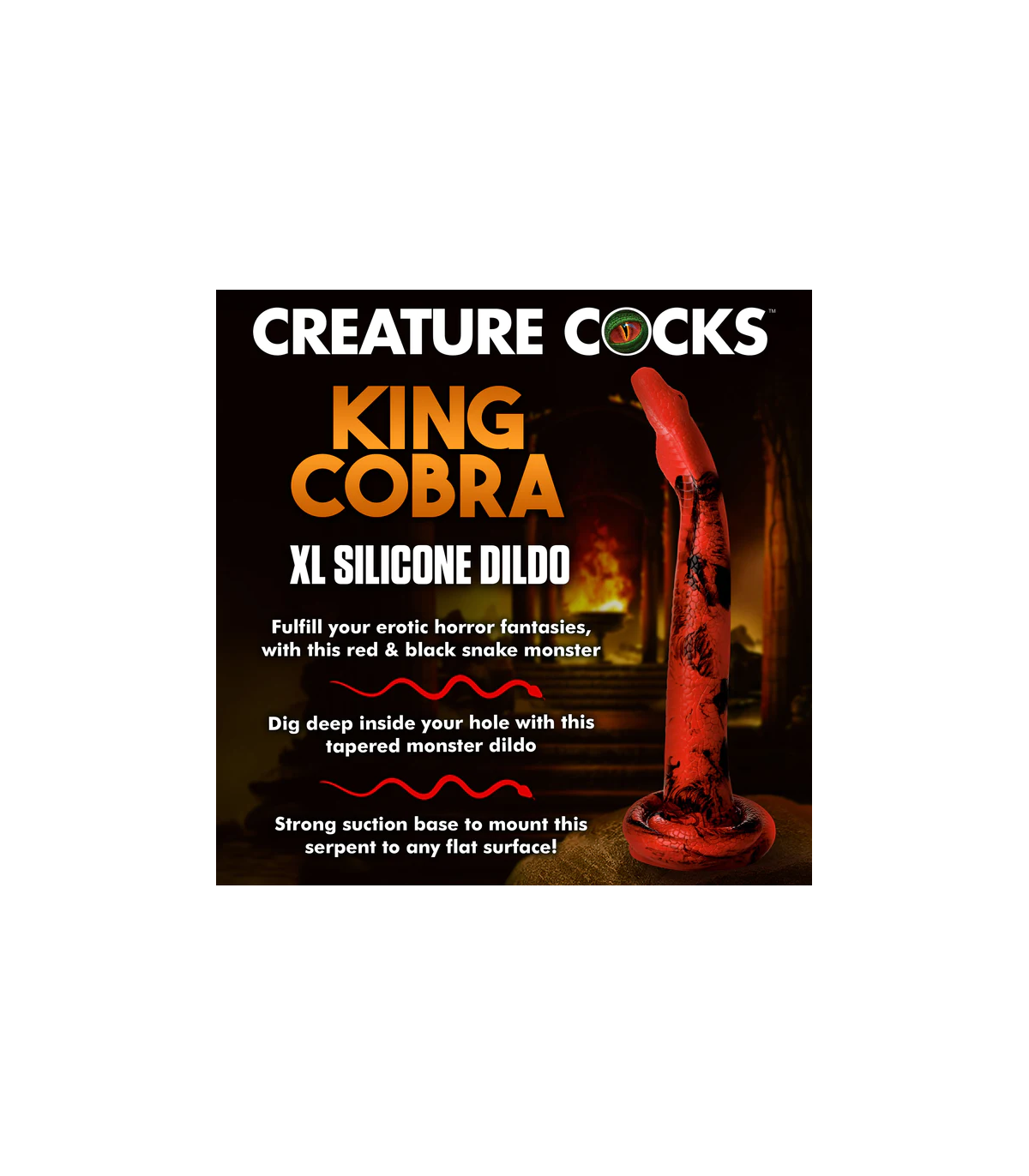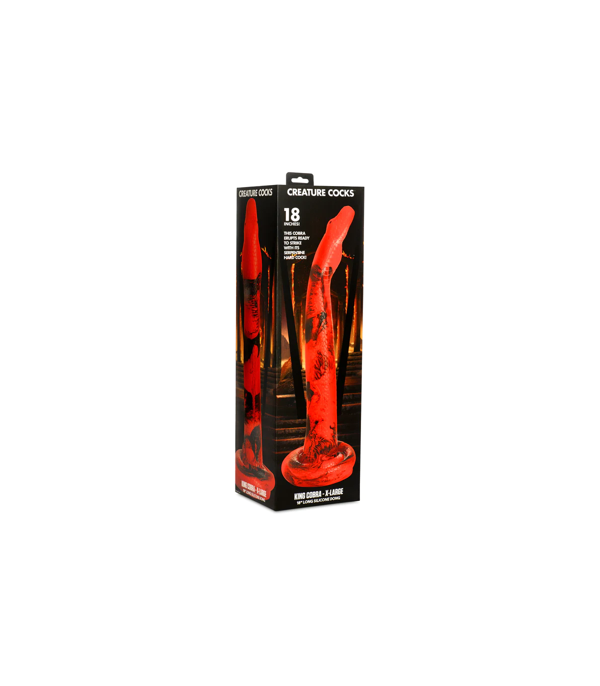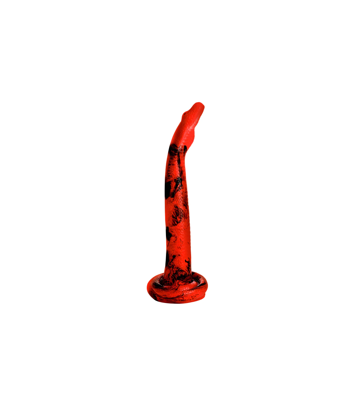 Estás listo para ser asolado? Mira lo bueno de un encantador de serpientes que eres con este Cobra de 18 pulgadas. Diseñado para desenrollarse y deslizarse profundamente dentro de su entrada trasera, está texturizado con detalles tentadores que añaden una intensa sensación a su exploración de puerta trasera. La punta de la manguera tiene la forma de cabeza de cobra. Disfrutarás de esa amplia llamarada de su cuello ancho mientras estalla dentro. La nariz recta y redonda facilita la inserción. Tiene un cuerpo rojo y negro vibrante con escamas texturadas que van hasta la base enrollada. Firme y flexible, está hecha de silicona segura para el cuerpo, premium y es libre de ftalatos. Utilícese sólo con lubricantes a base de agua para obtener los mejores resultados. La base tiene una fuerte succión-copa en ella para que puedas tener esas manos libres para guiar a la serpiente en tu caverna. La amplia base también es perfecta para combinar con un arnés de correa. Disfruta de varias maneras de jugar con esta serpiente pecaminosa. Disfruta explorando tu lado juguetón y salvaje. Prueba un poco de kink cosplay o gestiado de fantasía. Después de usarlo, lávelo con agua tibia y jabón suave, luego rocíelo con un limpiador de juguetes y deja que se seque el aire.