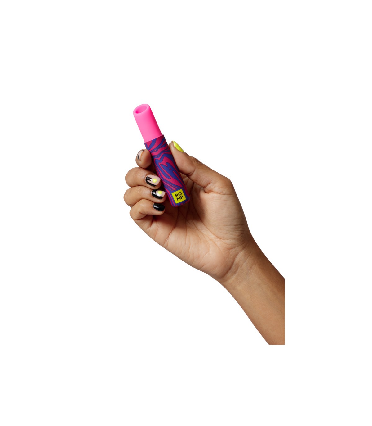 Succionador con forma de pintalabios. Gracias a ser recargable, tiene una gran potencia de succión