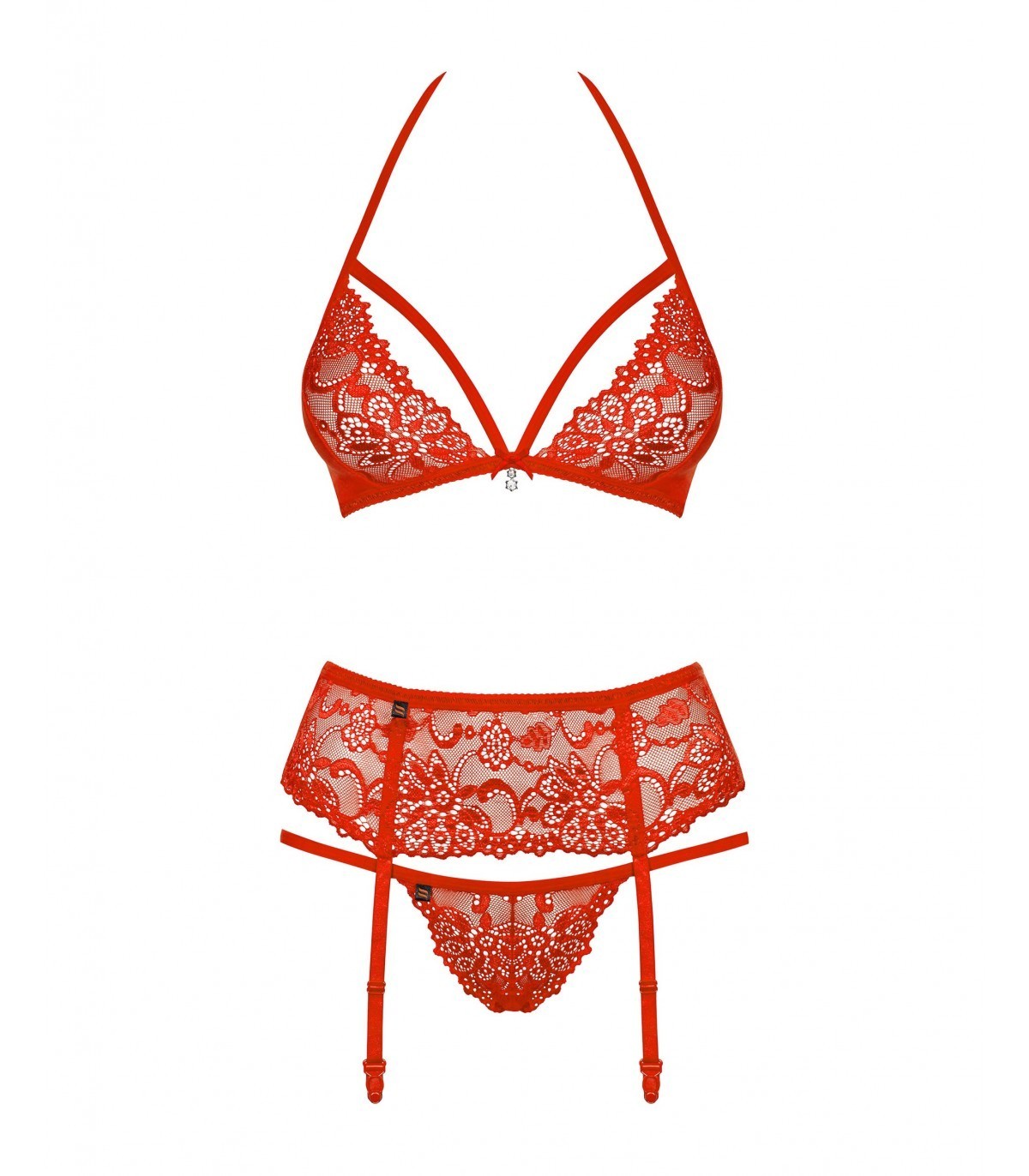 - el conjunto incluye sujetador, liguero y tanga (¡luce aún más atractivo cuando le agregas medias!)
