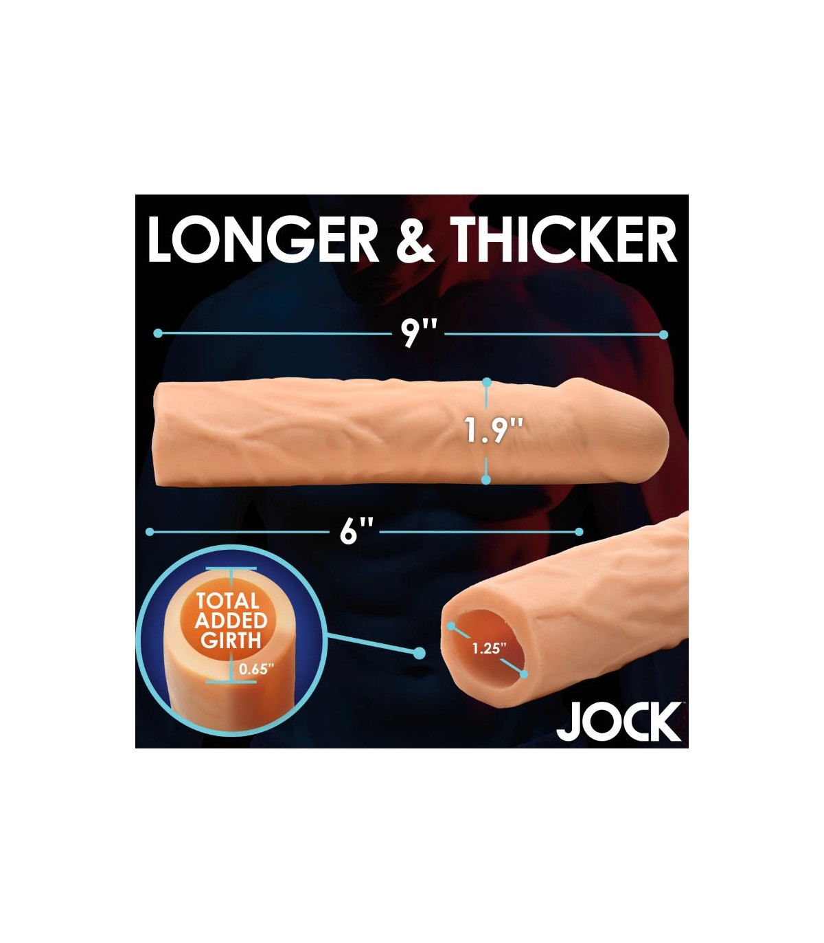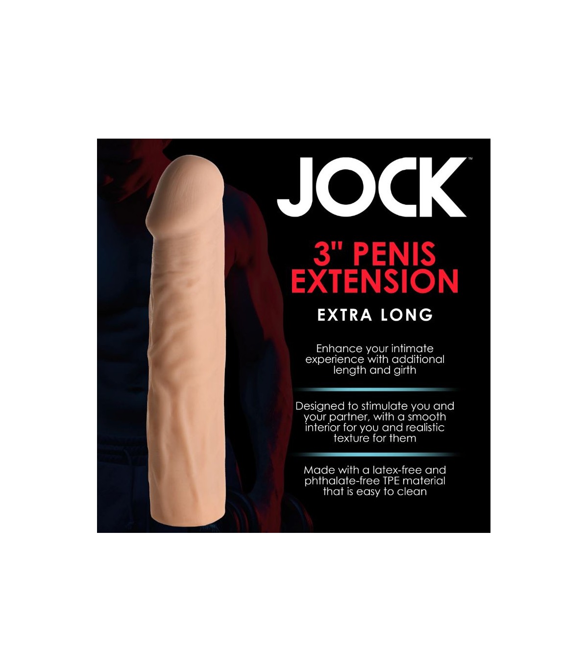 - ¡Gane tamaño en segundos!: Al deslizar esta funda para pene en su varilla, inmediatamente agrega 7'62 cm de longitud y 1'6 cm de circunferencia.