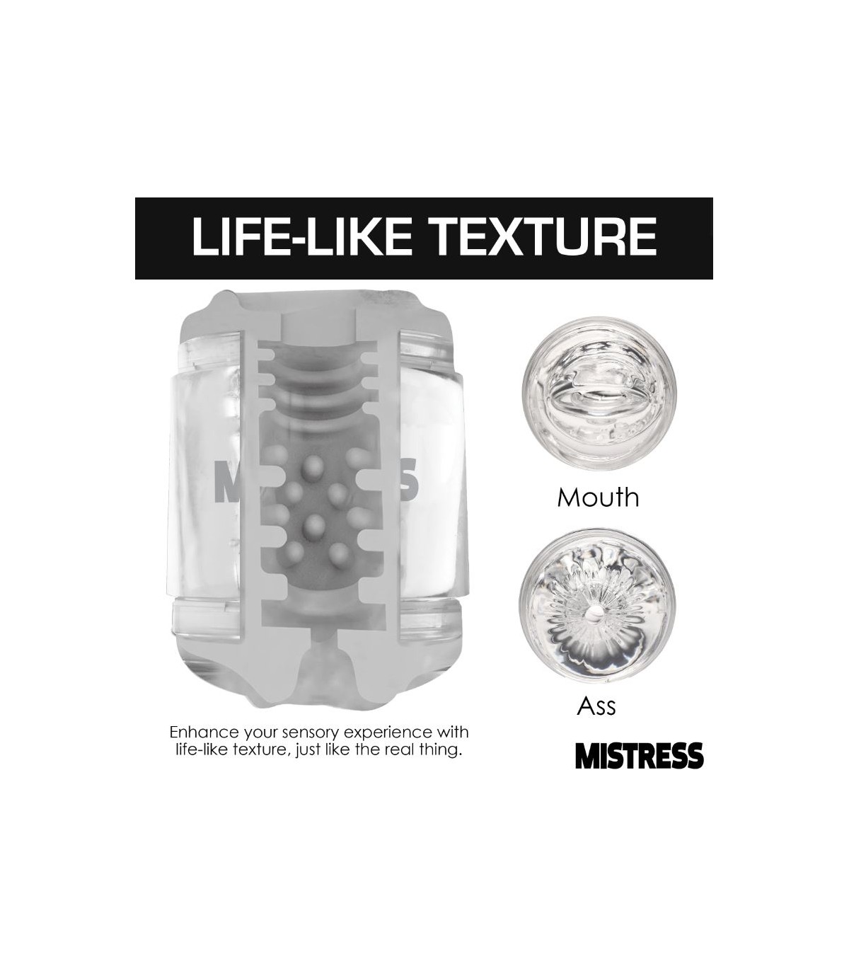 - Diseño transparente: ¡Este acariciador Mistress transparente te permite ver tu caña a través del túnel!