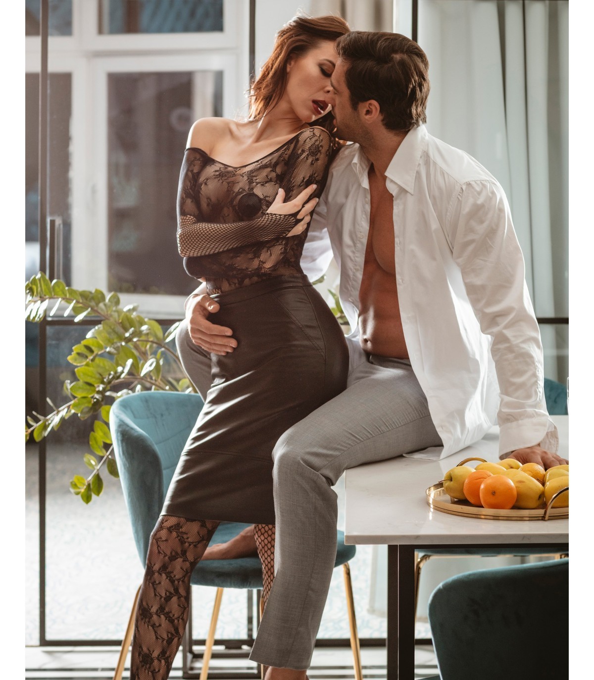 Sumérgete en la pura diversión. ¡Con este color sexy y detalles increíblemente tentadores puedes planificar tu aventura amorosa perfecta! Disfrute de un diseño perfecto y un atractivo motivo floral. ¿Y? ¡Disfruten de su tiempo juntos! Intrigante bodystocking con motivo floral: escote bajo enfatiza las curvas femeninas mangas largas prendas de punto ricamente adornadas: motivo floral y de malla picante “entrepierna abierta” tejido agradable y muy elástico (90% nailon, 10% elastano)
