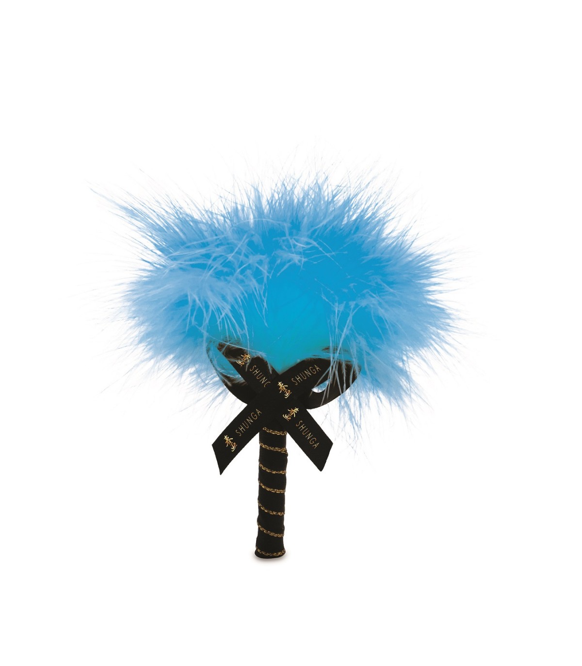 Las llamativas cajas para regalar incluyen un plumero a juego con una cinta negra que tiene el logotipo de Shunga bordado en dorado.