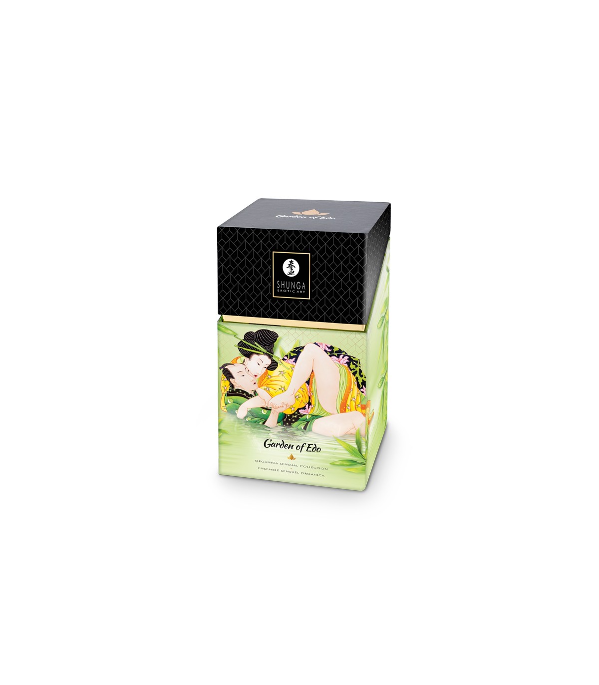 La nueva versión de esta colección, que anteriormente se ofrecía en una lata negra alta, se presenta en una caja rectangular negra y verde. Los Cristales Orientales que anteriormente se ofrecían en el kit EDO serán reemplazados por una pequeña vela de Té Verde Exótico para ayudar a crear el ambiente para los amantes apasionados por la naturaleza.