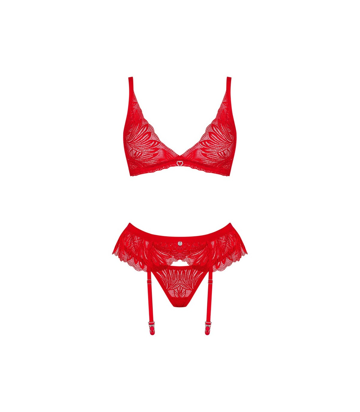 Conjunto Chilisa rojo compuesto por liguero, tanga y sujetador