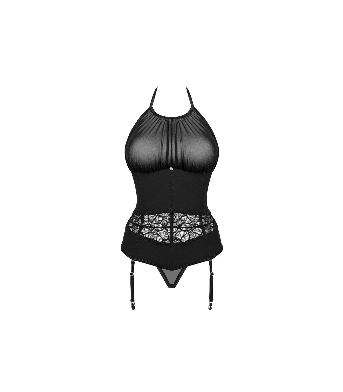 ¿Te apetece una lencería que caliente el ambiente pero no tienes nada en particular en mente? ¡No te preocupes más! El corsé Serafia fue hecho para seducir. La combinación poco convencional de un tejido ligeramente translúcido en los senos con El intrigante encaje floral que abraza la barriga y la espalda causa una impresión sorprendente. Los ligueros negros que se pueden quitar cuando lo desees simplemente añaden sabor picante. Siéntete libre de experimentar el placer.