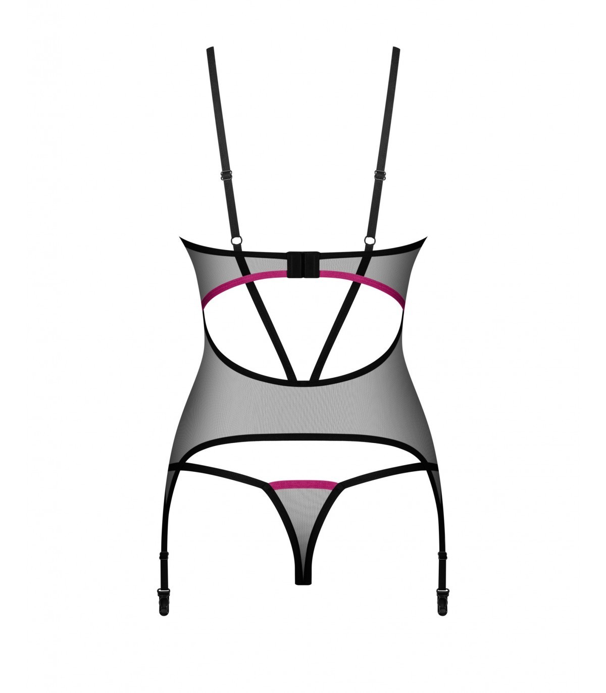 Combina este corsé de malla negro con una bata y medias de otras colecciones de Obsessive. Diseñado en la UE.