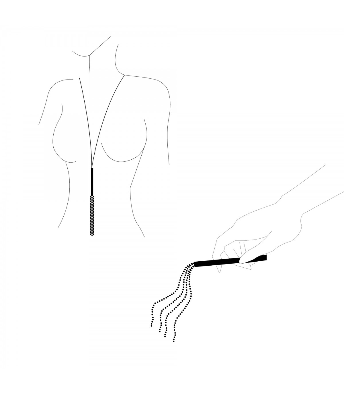 ¡Alerta por excitación!! El roce de las cadenas metálicas en tu piel despierta tu imaginación... Un colgante para cualquier ocasión y un látigo que castiga con placer. Contenido: Collar y látigo de cadenas metálicas.