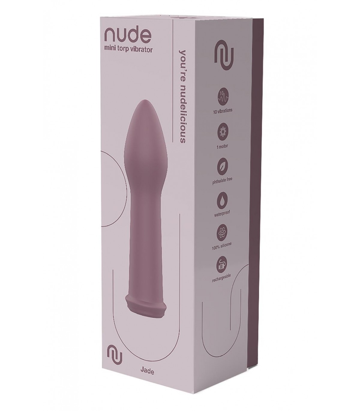 Este Mini Vibrador Nude tiene forma de torpedo para una fácil penetración. También es fácil de operar, gracias al botón único que se puede usar para recorrer las 10 vibraciones fuertes. Jade tiene 7 ritmos y 3 velocidades. Su forma y tamaño lo hacen perfecto para principiantes. El mini vibrador Nude está hecho de silicona suave y ABS, libre de ftalatos y seguro para el cuerpo. Tiene una clasificación IPX6 de resistencia al agua. Para cargar después de su uso, el vibrador tiene un orificio de carga impermeable. Se incluye un cable con clavija USB. Después de una carga completa, tu vibración Nude estará lista para 90 minutos de deleite nudelico.