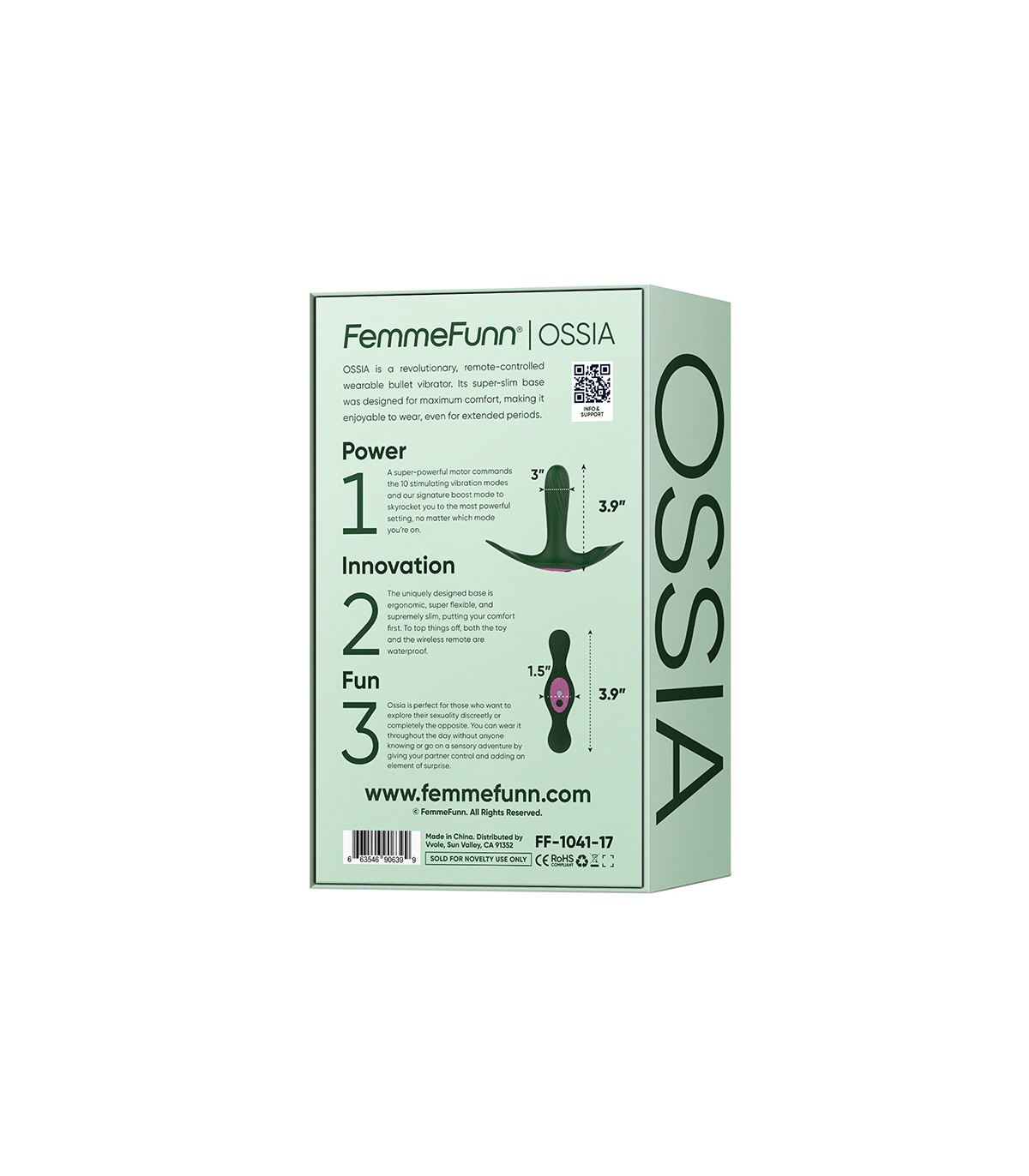OSSIA es un revolucionario control remoto vibrador de bala portátil. Su base súper delgada fue diseñado para la máxima comodidad, haciéndolo agradable de llevar, incluso durante períodos prolongados
