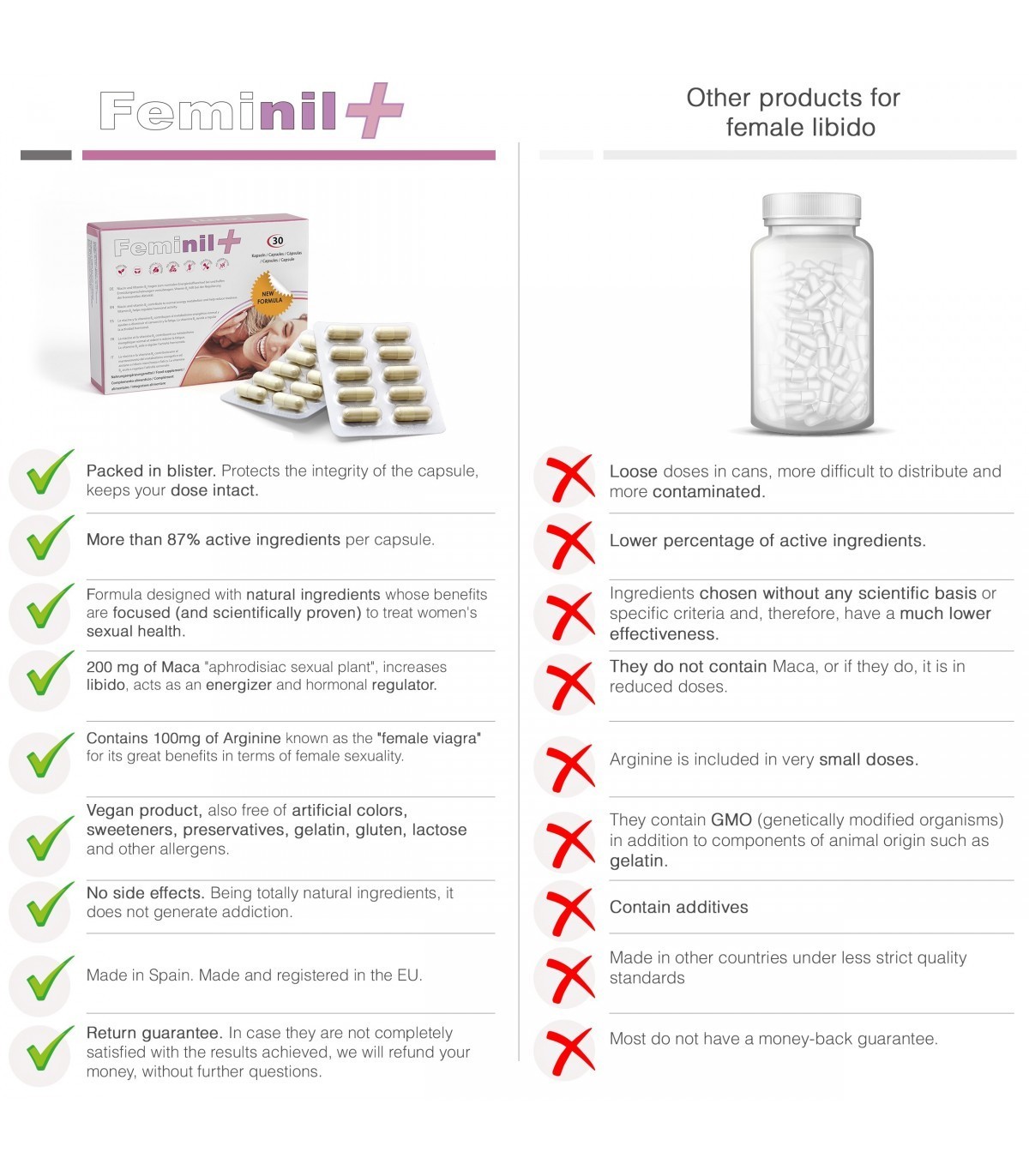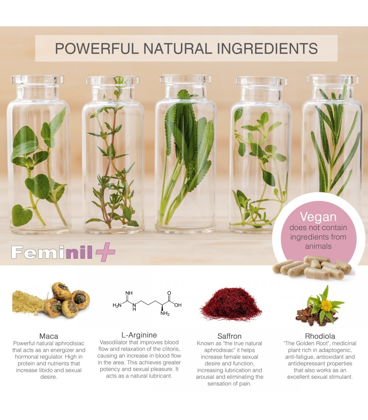 Con Feminil Plus podrás ayudar a despertar la libido de la mujer, aumentar el deseo y el placer y mantener relaciones íntimas más intensas, todo ello de manera sencilla, segura y natural.