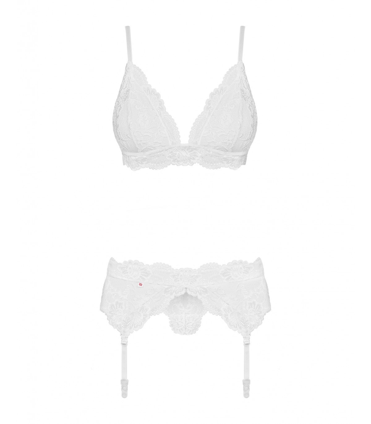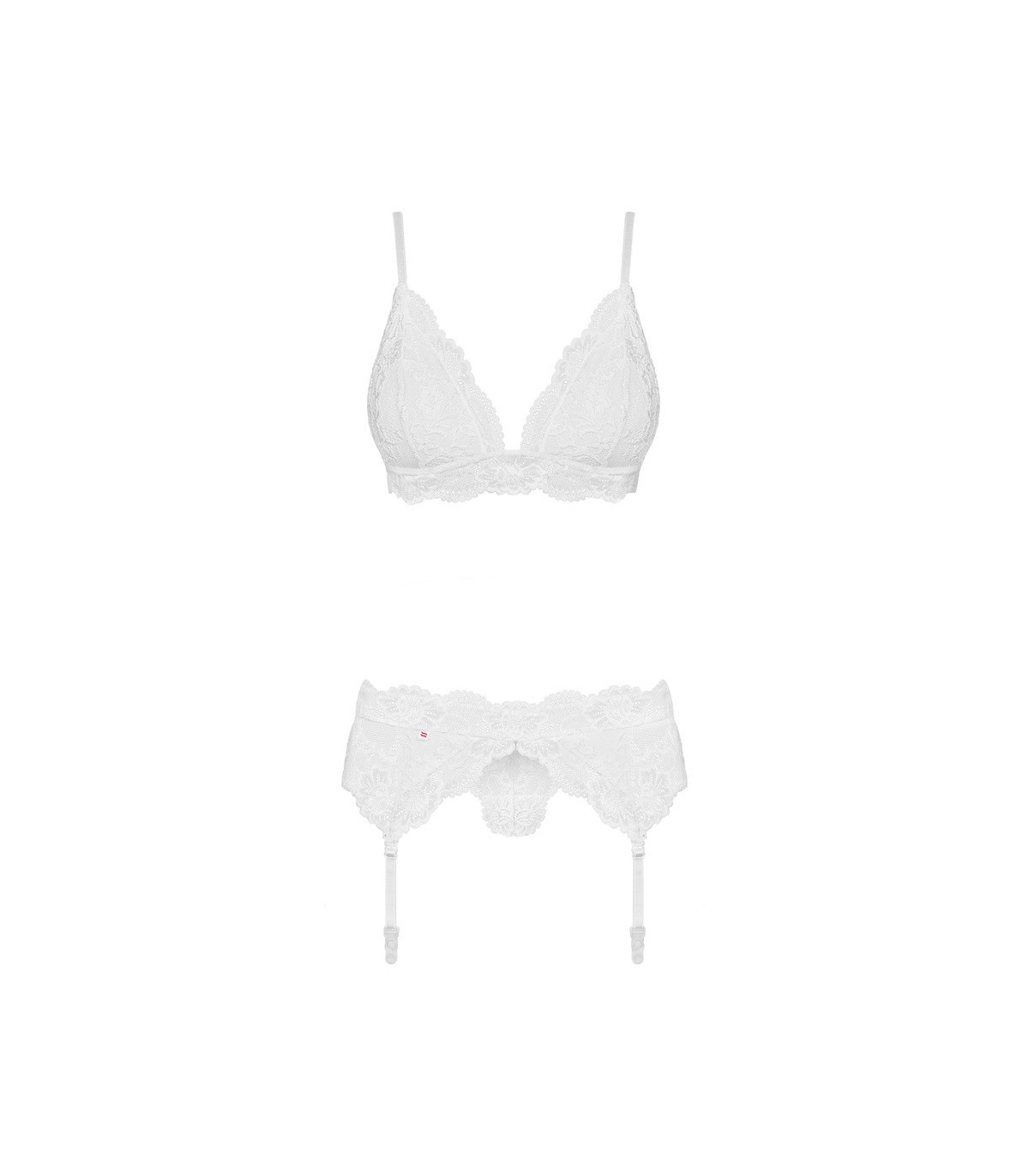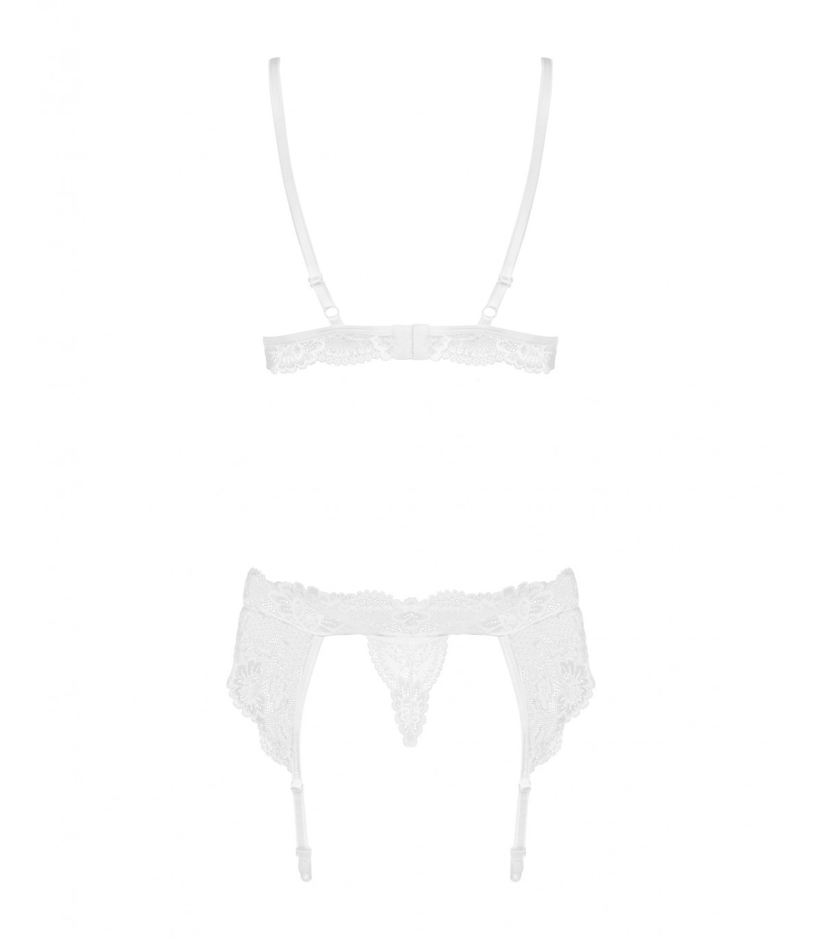 • Seductor conjunto de lencería blanca: sujetador, liguero, tanga