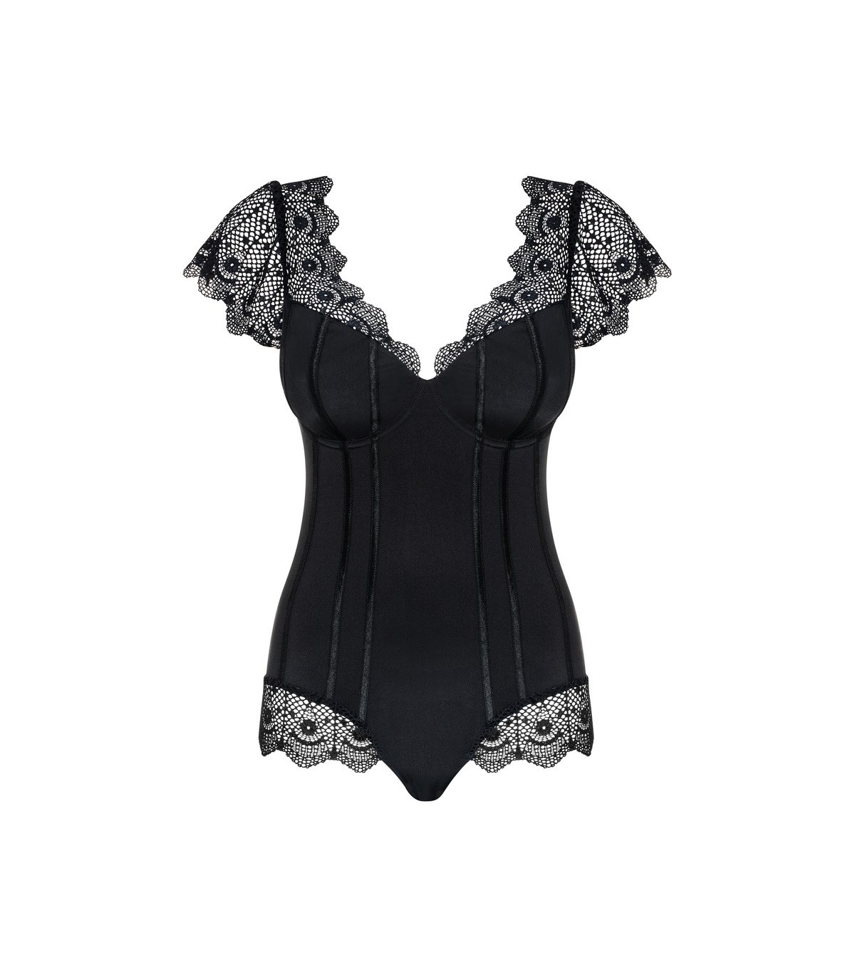 Resalta tu encanto natural con el corte extremadamente femenino del peluche negro Moketta. Adorna maravillosamente el cuerpo, deja al descubierto las piernas y realza el busto haciéndolo lucir súper sexy. Las cintas verticales adelgazan delicadamente la cintura y el El aireado acabado de encaje en los hombros añade ligereza y elegancia. Este peluche también quedará bien en un conjunto de noche un poco más atrevido.