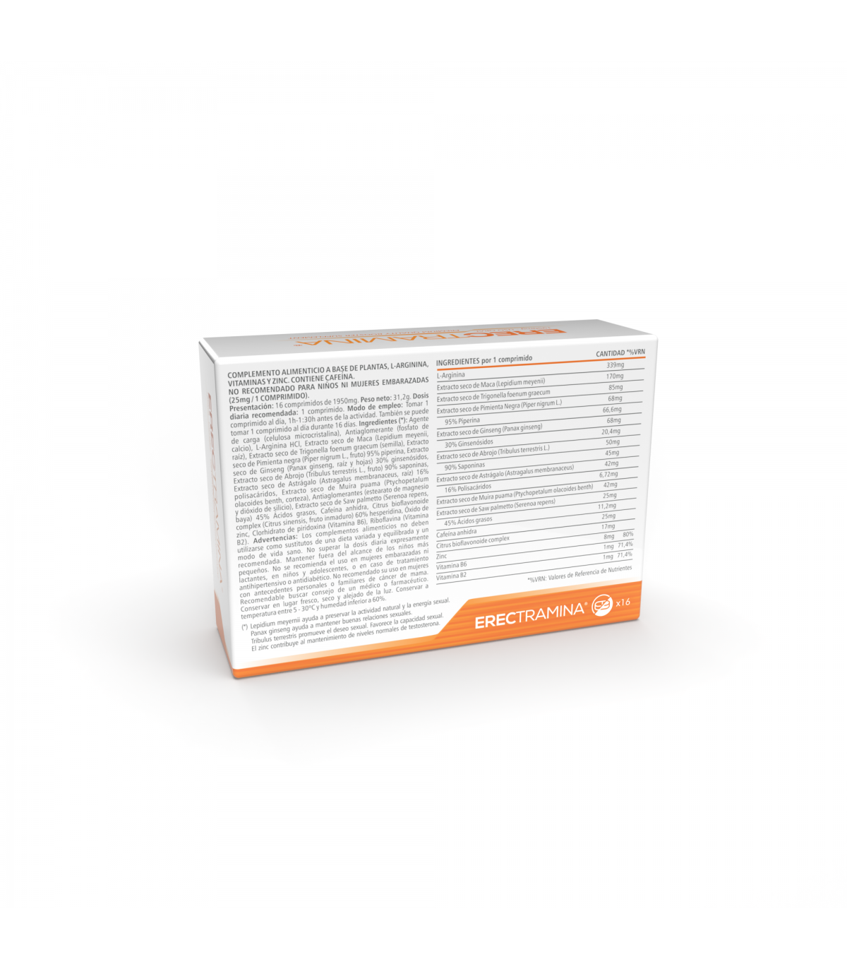 ERECTRAMINA® es un complemento alimenticio a base de aminoácidos, raíces y plantas afrodisiacas por lo que es totalmente NATURAL, sin químicos añadidos y sin efectos secundarios tomando la dosis recomendada. Aún así aconsejamos consulte a su médico si tiene alguna duda sobre la ingesta de ERECTRAMINA® antes de tomarlo.