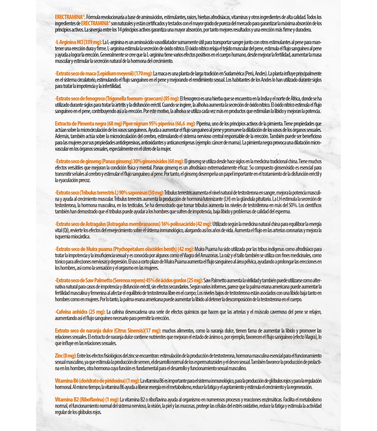 ERECTRAMINA® es un producto 100% natural, sin químicos, sin efectos secundarios y disponible sin receta médica.