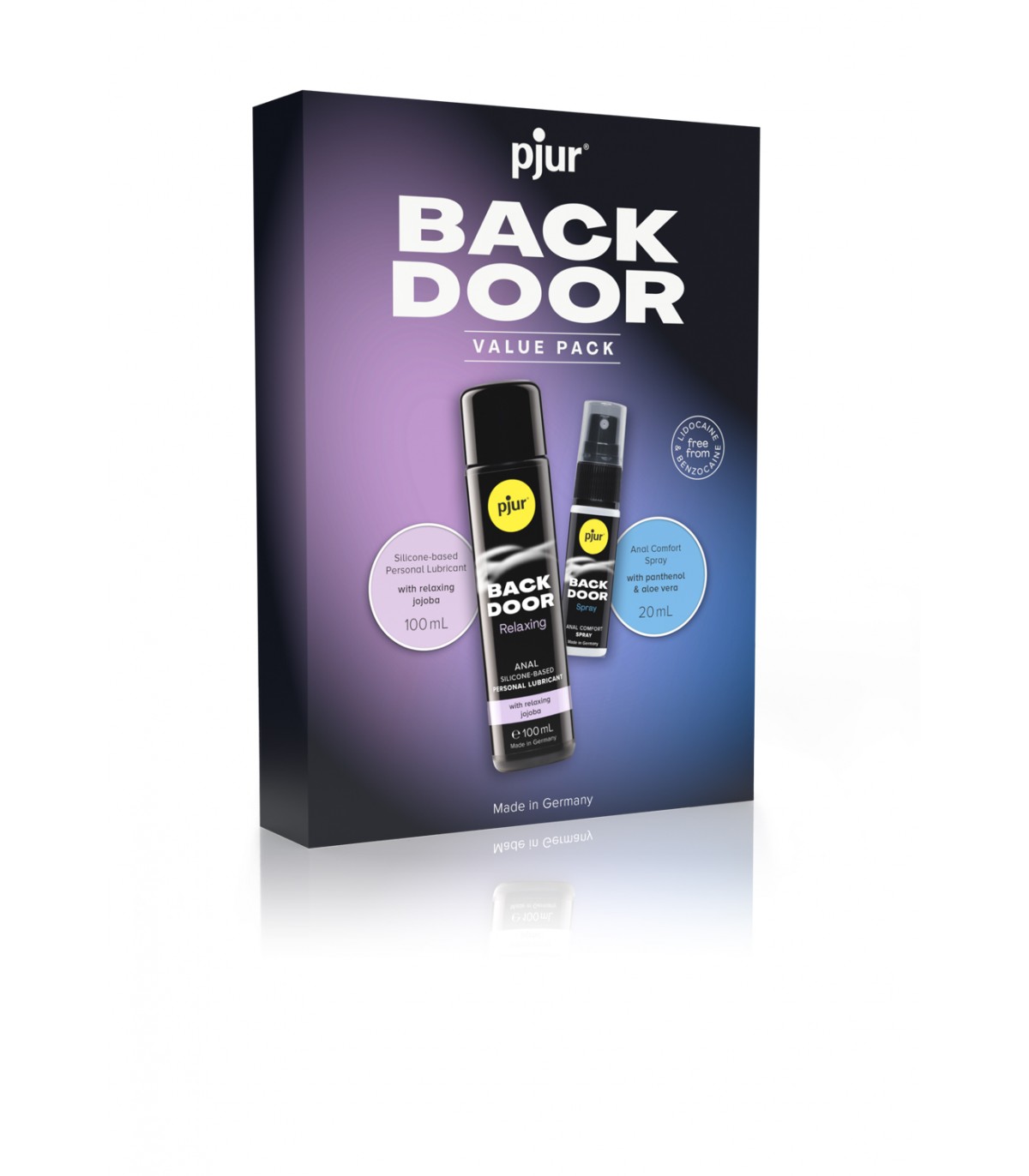 Kit formado por Lubricante Backdoor 100 ml a base de silicona y spray relajante anal Backdoor 20 ml.