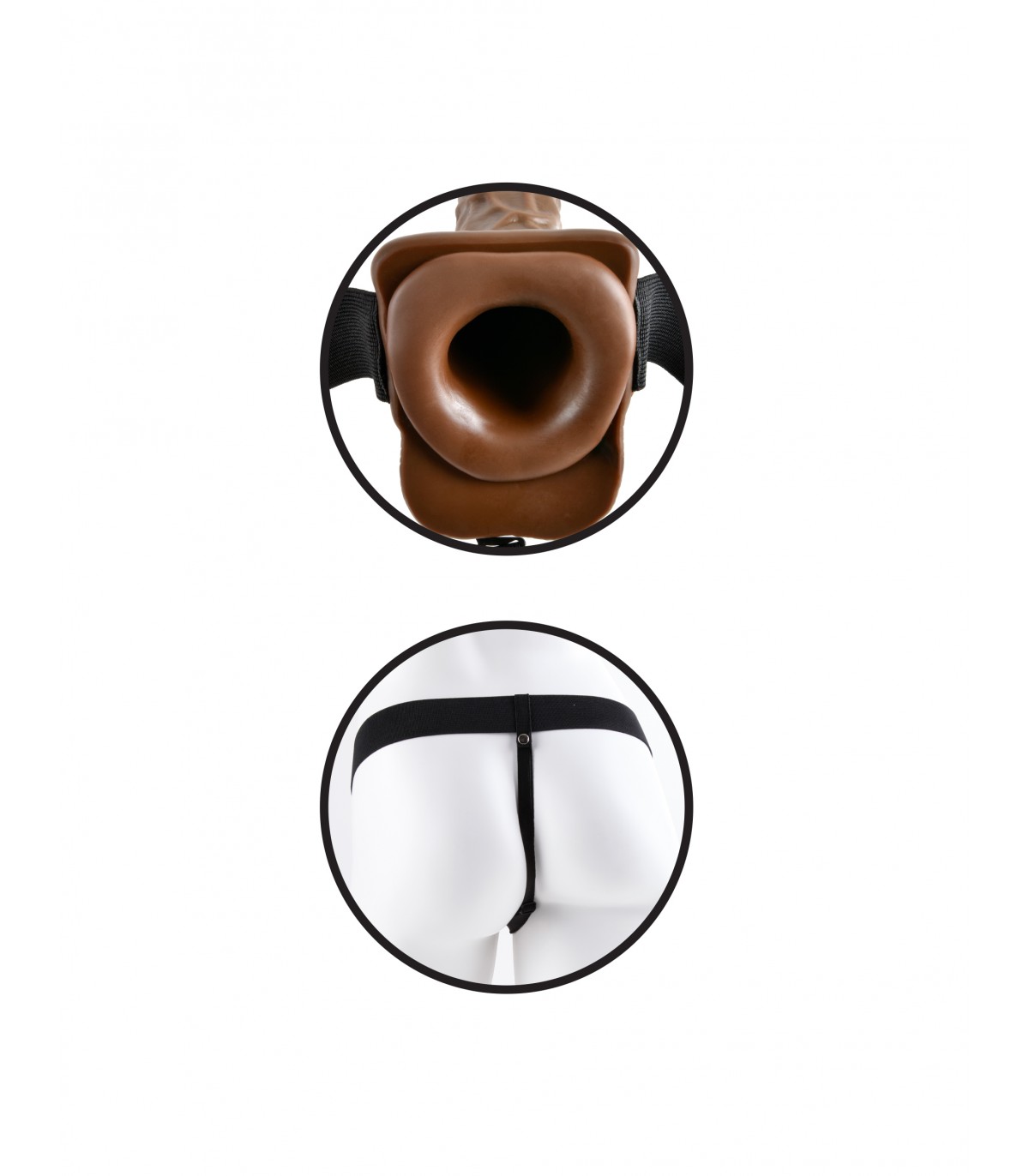 Ahora puedes tener la longitud y el grosor que siempre has soñado y ser todo el hombre que puedes ser con el arnés hueco de 7" con testículos de Fetish Fantasy Series®. ¡Dile adiós a las vergonzosas decepciones a mitad de camino y dale la bienvenida a una sonrisa satisfactoria de tu amante! El cómodo arnés elástico se ajusta fácilmente para adaptarse a la mayoría de los tamaños, mientras que el consolador de PVC de 7" llegará al lugar correcto en todo momento. Es perfecto para hombres con disfunción eréctil, problemas de eyaculación precoz o cualquier persona que simplemente busque agregar algo extra a su próximo encuentro. Lo mejor de todo es que aún puedes disfrutar del sexo caliente cara a cara y asegurarte de que ambos se corran incluso si él ya terminó o no puede lograr que se levante. El consolador es compatible con lubricantes a base de agua y silicona. La limpieza es muy sencilla después de la diversión con un limpiador antibacteriano y agua tibia.