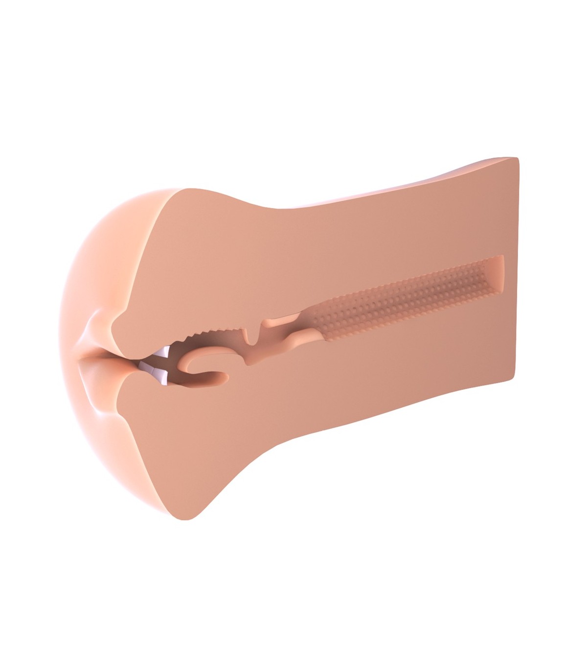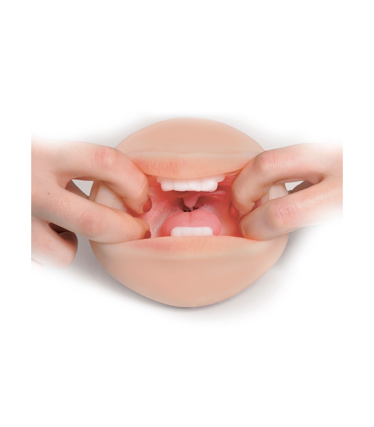 Con un tamaño inteligente para ser realista y compacto, el exclusivo Fanta Flesh® y el túnel interno súper suave se sienten como si fueran reales, ¡solo que mejor! Deslízate entre esos deliciosos labios, pasando por la lengua flexible y los dientes realistas hasta la garganta texturizada que siempre está abierta y lista para tragar profundamente tu pene duro como una roca. Ambas filas de dientes provocadores acarician tu eje, mientras que el cómodo túnel con su extremo cerrado te dejará seco en todo momento.